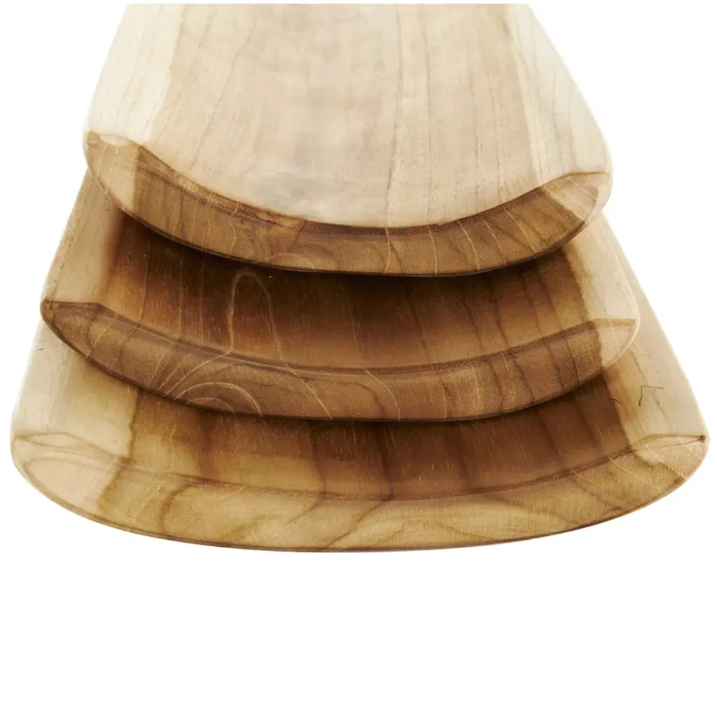 Natural trays in this set can be used as stylish decorative elements to display collectibles or other small items. This brown-colored ottoman tray comes as a set of 3. Natural style.
