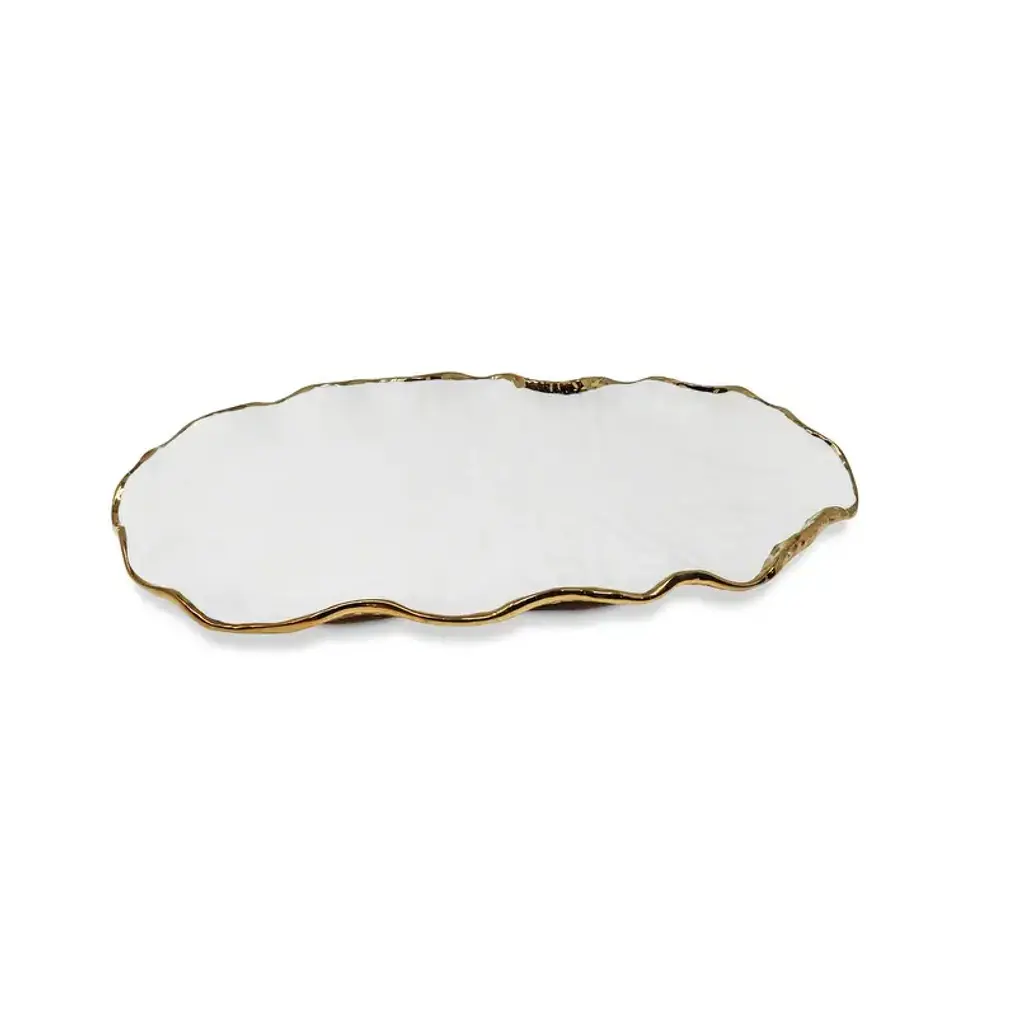 New Bone China Oval Tray With Gold Scalloped Edge - White - White