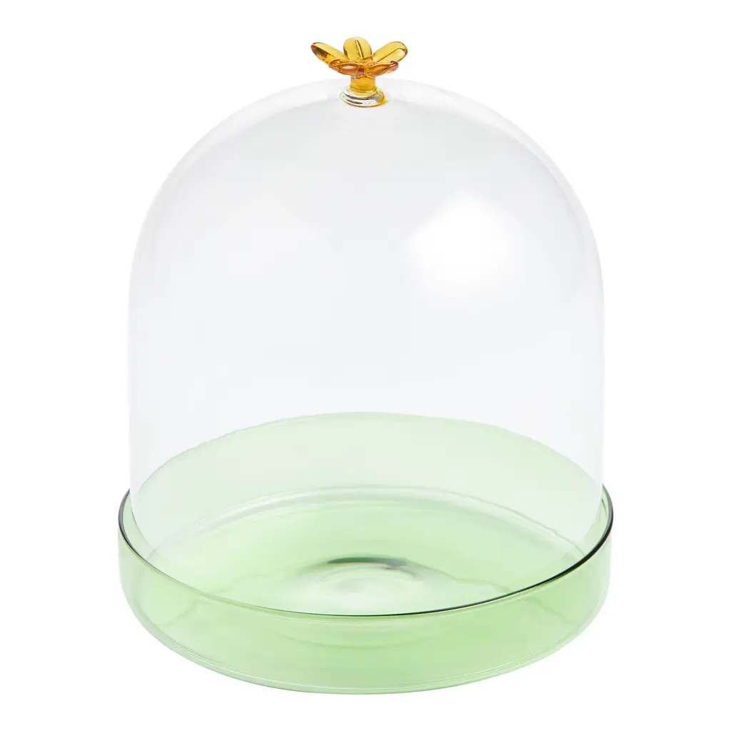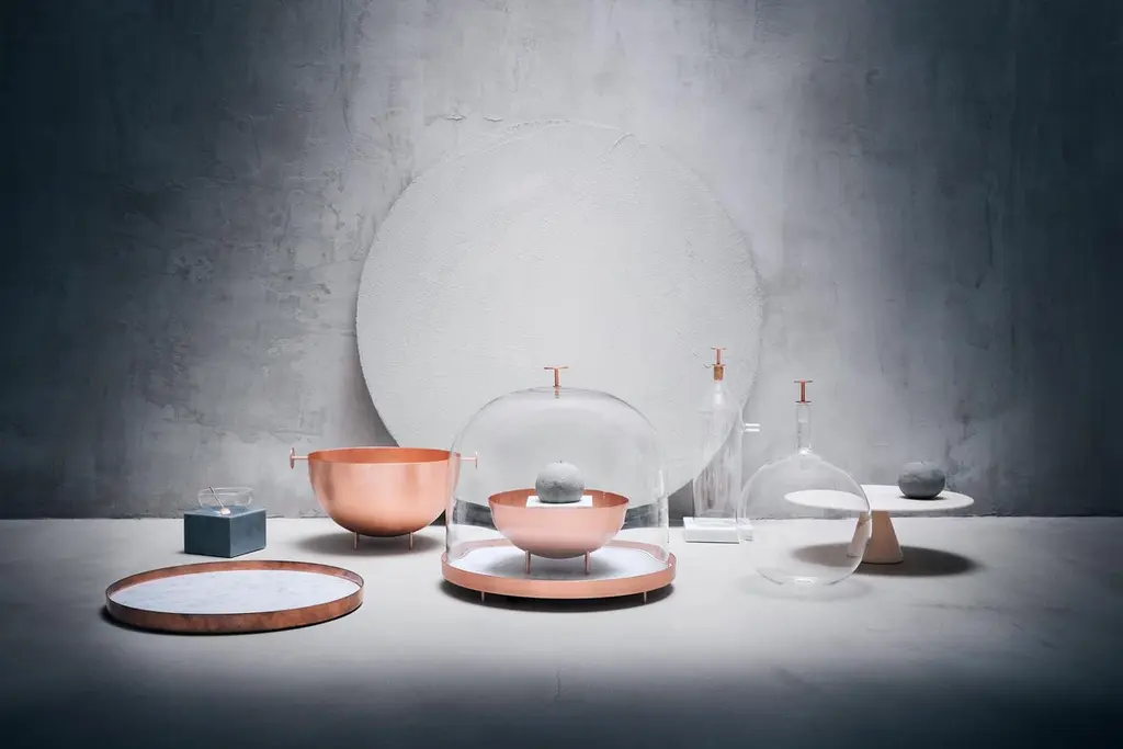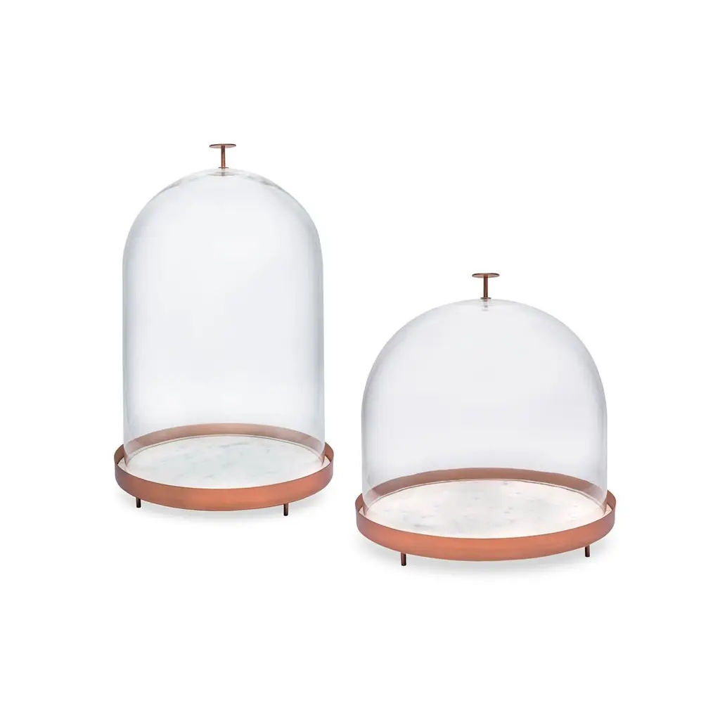 New Moon Small Glass Bell With Copper And Carrara Marble Tray By Elisa Ossino