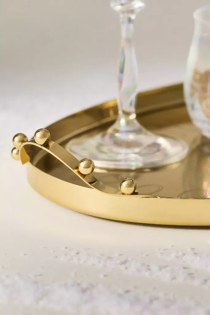 Elevate your bar cart with this New York City Ballet tray, crafted from stainless steel with studded handles and an elegant design. Inspired by the enchanting costumes, ethereal sets, and graceful choreography of *George Balanchine's The Nutcracker*, this only-at-Anthro collection brings festive characters to life in a *rvrence* of holiday wonder.