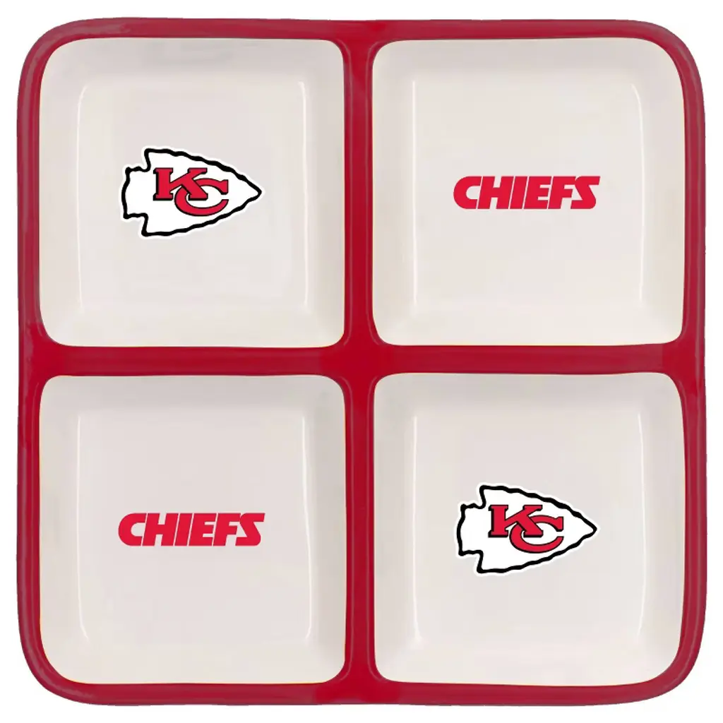 This four section square tray is perfect for your tailgate party! Keep all your game day snacks ready, perfect for chips and dips or any other snack. This is a must add to your gameday spread.