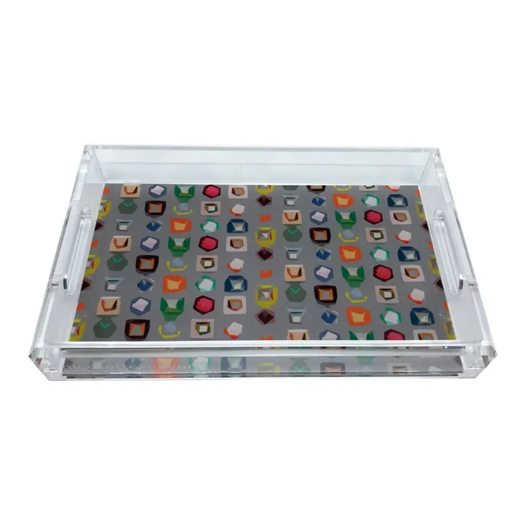 These Acrylic Trays make for incredible serving pieces. With signature patterns on the back, Nicolette Mayer Trays elevate everyday entertaining. Use on your bar, serving coffee to cocktails, or as a vanity tray for your perfume bottles & more! Indoor/ Outdoor. Made in the USA. DIMENSIONS: 18" x 18" MATERIALS:100% Acrylic. CARE: Wipe clean with a damp cloth. Use "Zep Vinyl Window Cleaner" to remove any scratches or dust. Do not use regular Household Cleaner, which will create a 'hazy' effect on the Acrylic.