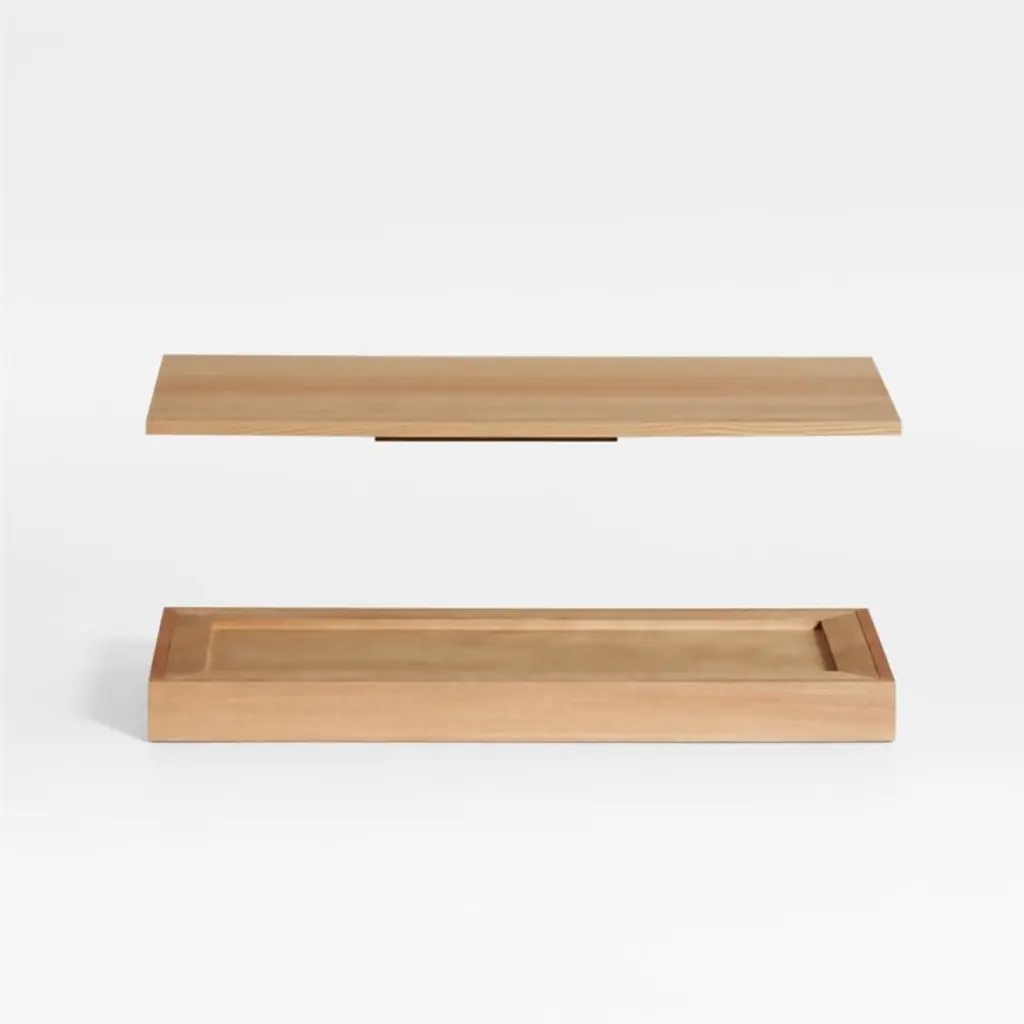 Designer Teruhiro Yanagihara’s No.10 translates a Japanese-inspired minimalism in a light oak wood tray. Spare, serene and beautifully practical, it can be used for serving or placed directly on the table as a platter with small bowls of food. Inspired by classic banjyu trays, which are used to transport and serve the traditional confection manjū, the name is a play on words based on the pronunciation of ban and jyu. Skagerak oak is sustainably sourced and hand-selected for quality and its fine woodgrain.