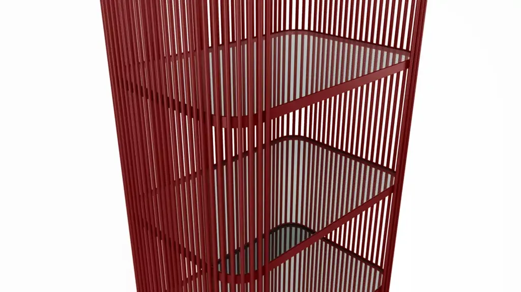 This graphic collection represents the patterned movement of a sound wave, with its silences and saturations. A semi-transparent wavy shape is created using an alignment of metal rods, surrounding the smoked glass trays.