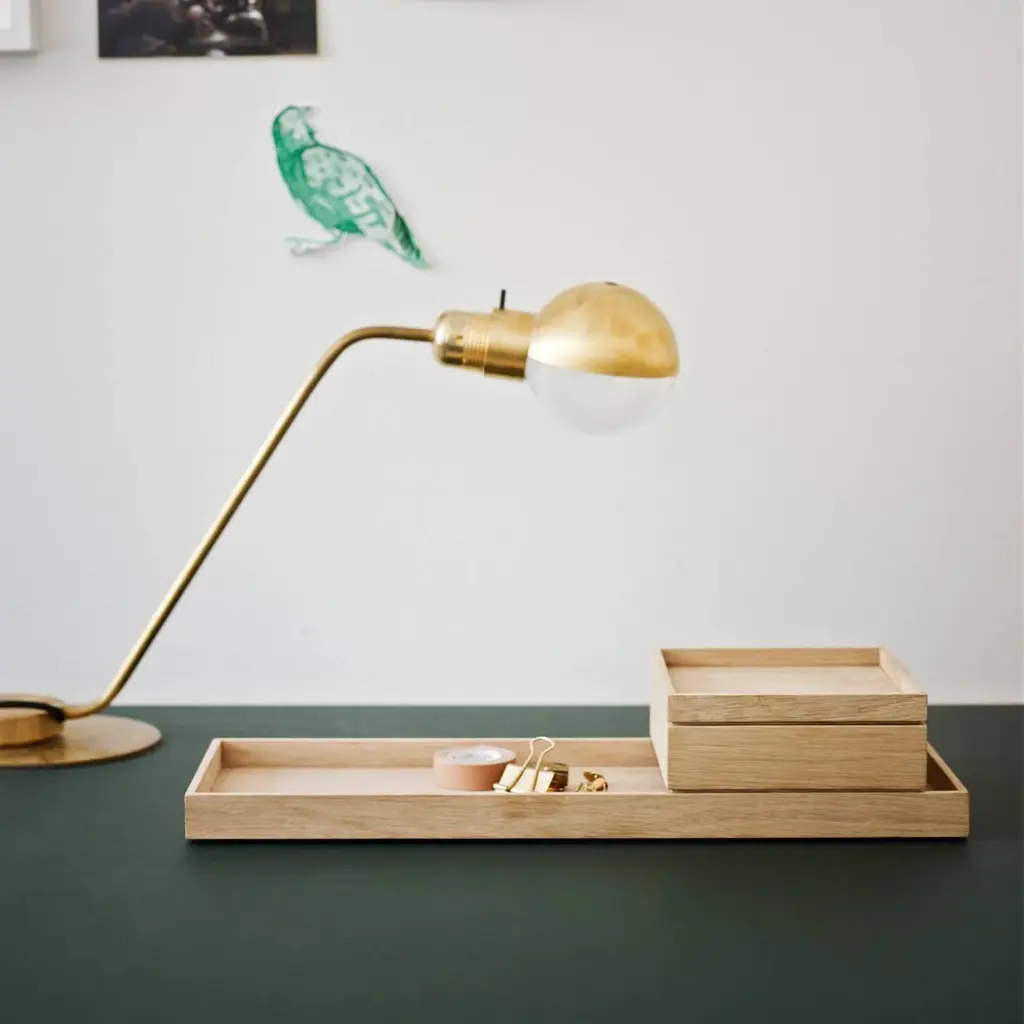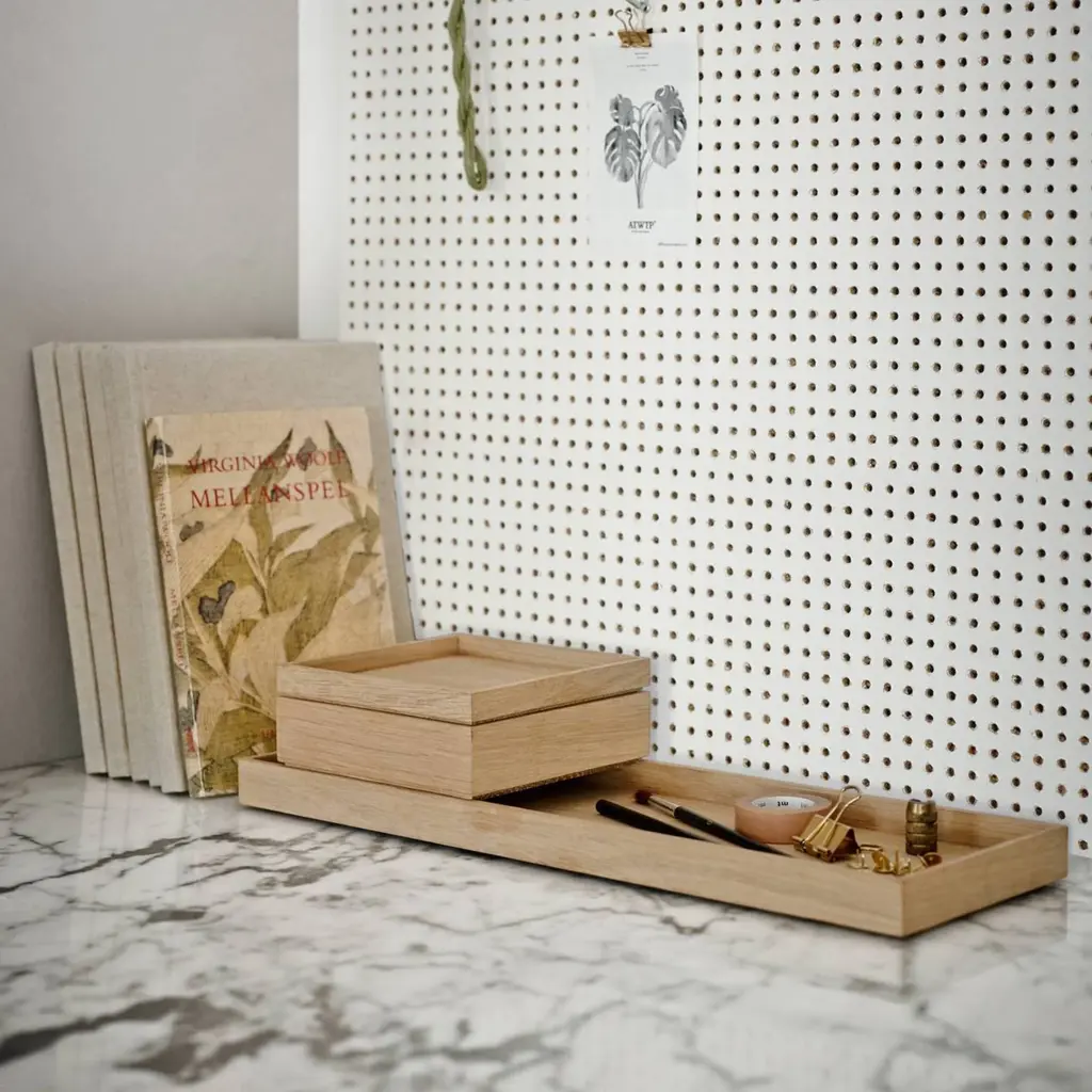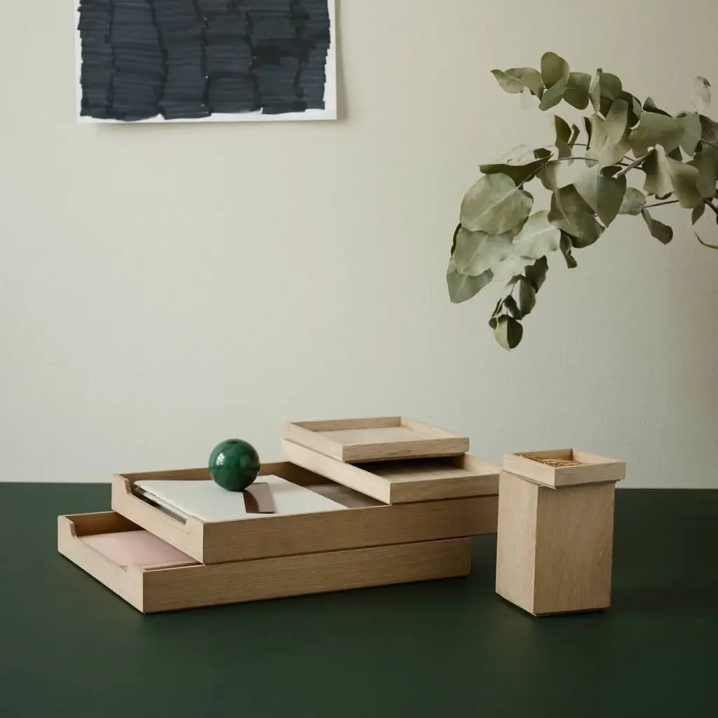 In natural light oak, Nomad’s versatile rectangular tray could be used for organizing desktop items, toiletries, jewelry or almost any other random items for the home. In 2 sizes, the grooved bottom allows the smaller version to be fitted crosswise onto the larger one. It also coordinates with other pieces in the series from the Danish design duo known as VE2. Skagerak’s wooden items are made from sustainably sourced European oak, the timber hand-selected by Skagerak for its appealing light color and attractive fine grain.