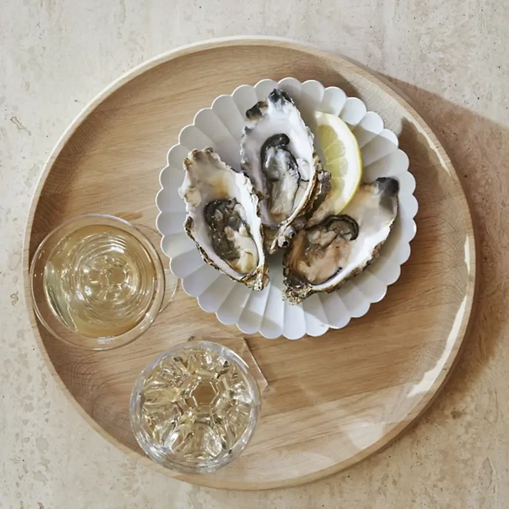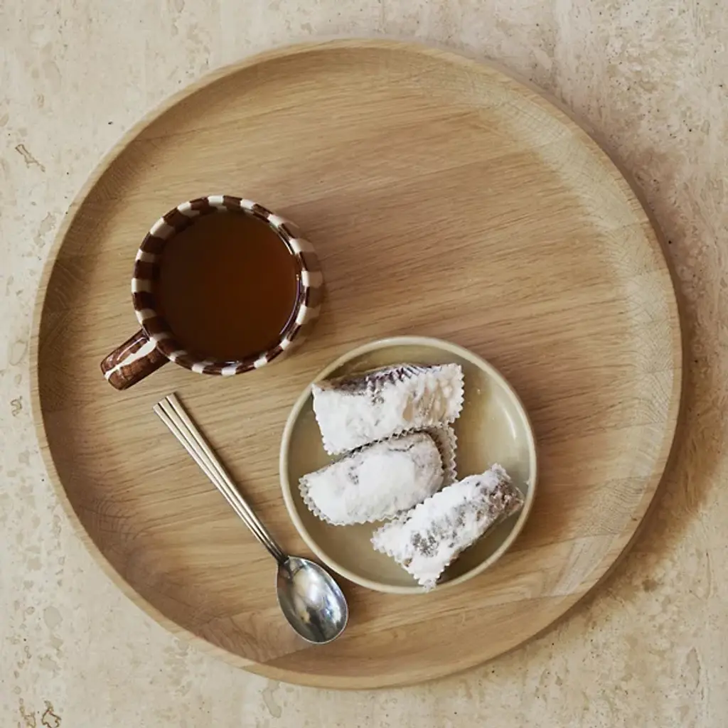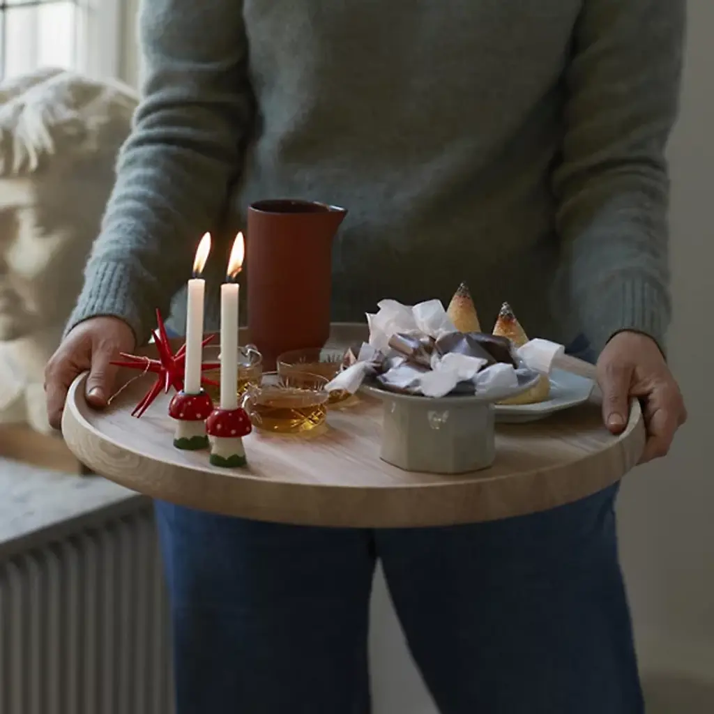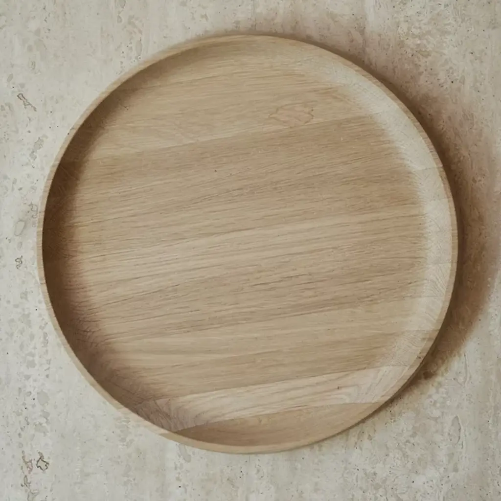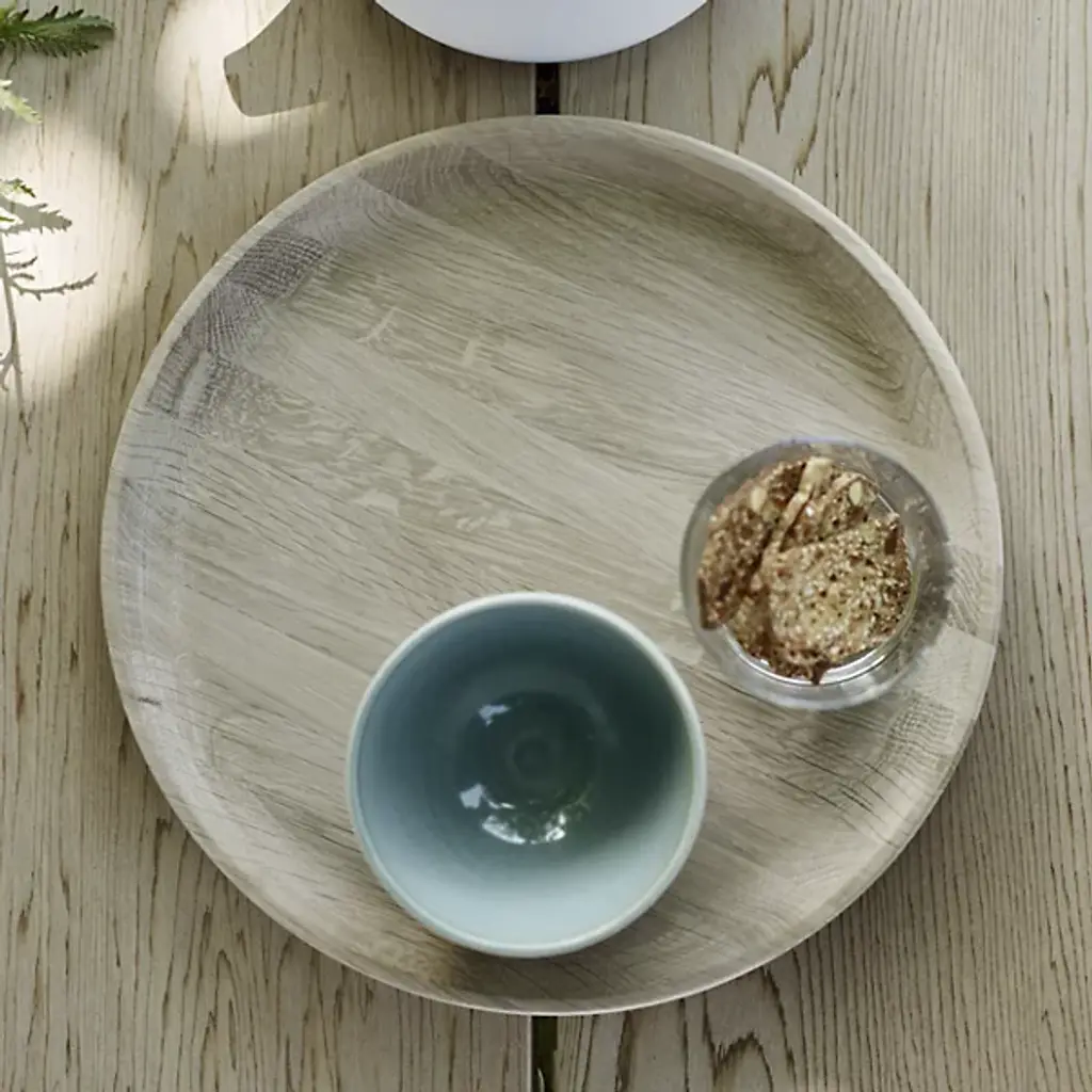 Serving takes on a contemporary form with the Nordic Round Tray from Fritz Hansen. Circularly shaped, this serving piece provides space for cocktail glasses, small bites, and decorative objects. Crafted from oak responsibly sourced for sustainability, this tray brings organic yet modern texture to your home décor while allowing you to attend to your guests with ease.