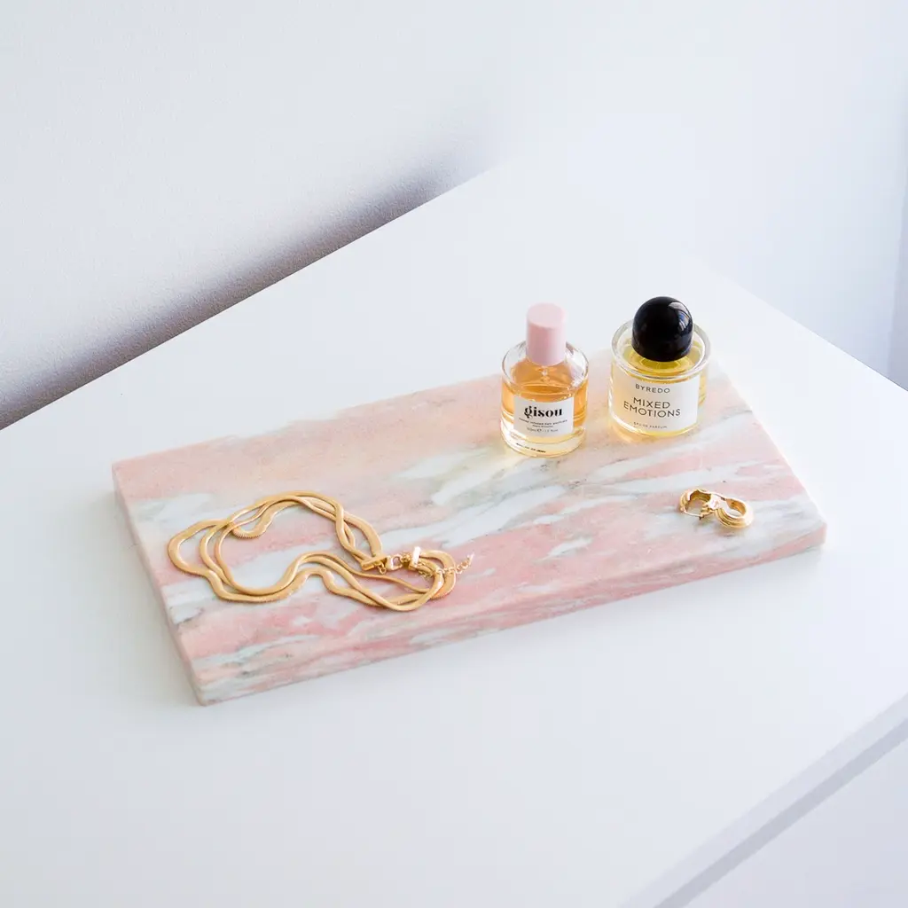 A pink marble was very popular in the 90s and is now having a moment. This is the stone that inspired our story to repurpose forgotten stone. Made from Norwegian marble.