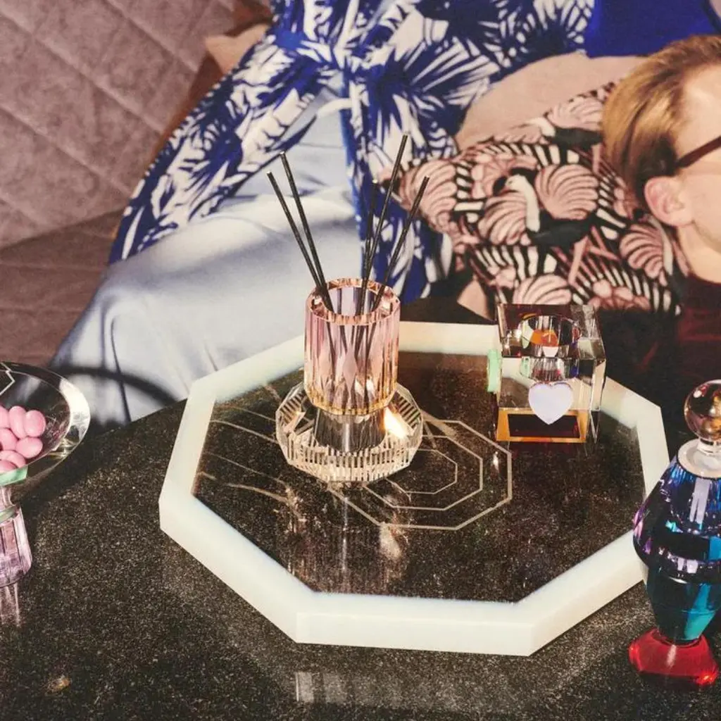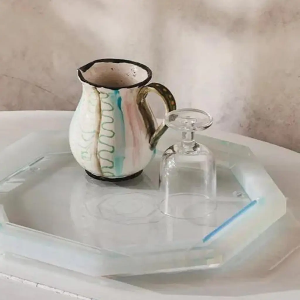 Octagonal crystal tray, CHE model, 21st century.A large octagonal tray in a contemporary style, transparent and white. As well as adding a refined aesthetic, this tray also offers a practical solution by maintaining order and organisation in a space while serving as a support to showcase precious objects. Production time: 2 to 6 weeksh: 5cm; w: 36cm; d: 36cm