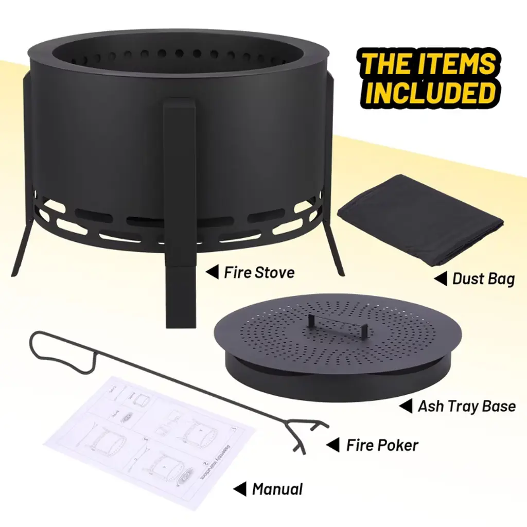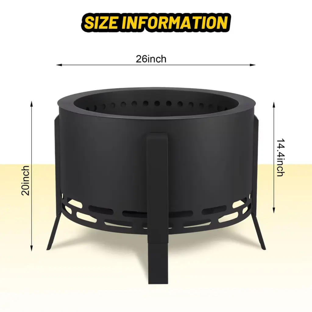 Odk 26" Smokeless Fire Pit With Ash Tray Base, Wood Burning Firepit, Smokeless Outdoor Fireplace With Dust Bag, Outdoor Fire Pits For Bbq, Camping