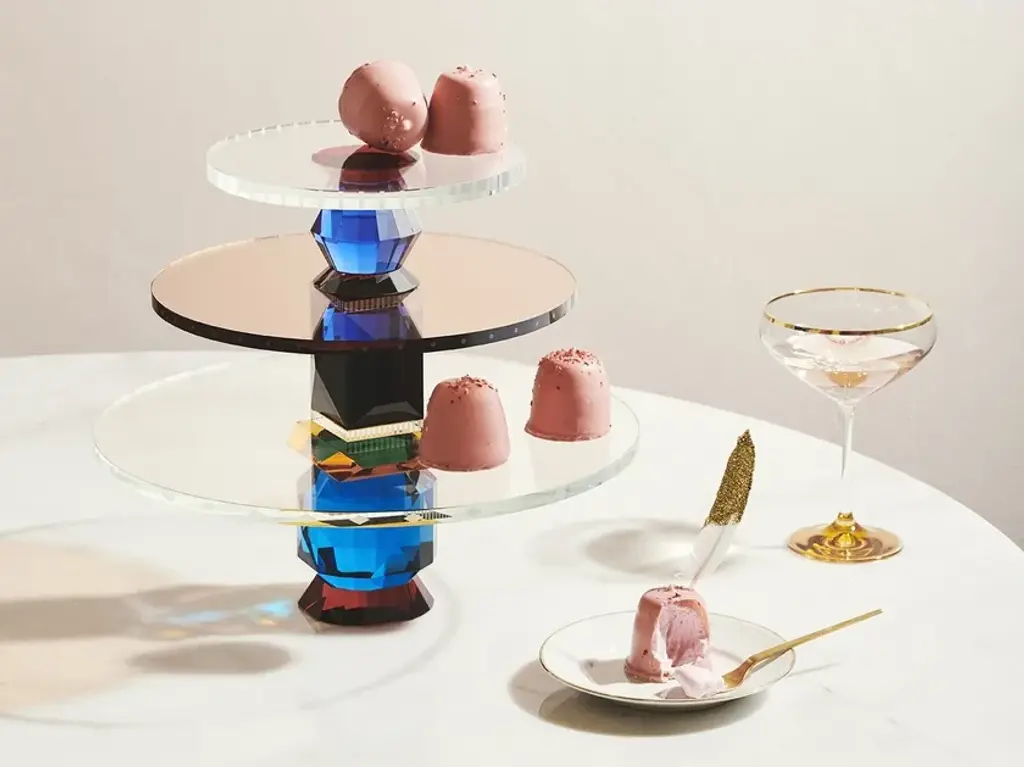 Sprawling mansions of Art Deco giants and architecture-rich Oklahoma has been the great inspiration for Julie & Andrea toinvent the OKLAHOMA Tray. Capturing the essence and beauty of the colorful crystal united with historic style and modern design our three layers OKLAHOMA Tray perfectly complements any desserts, fruits or cakes.