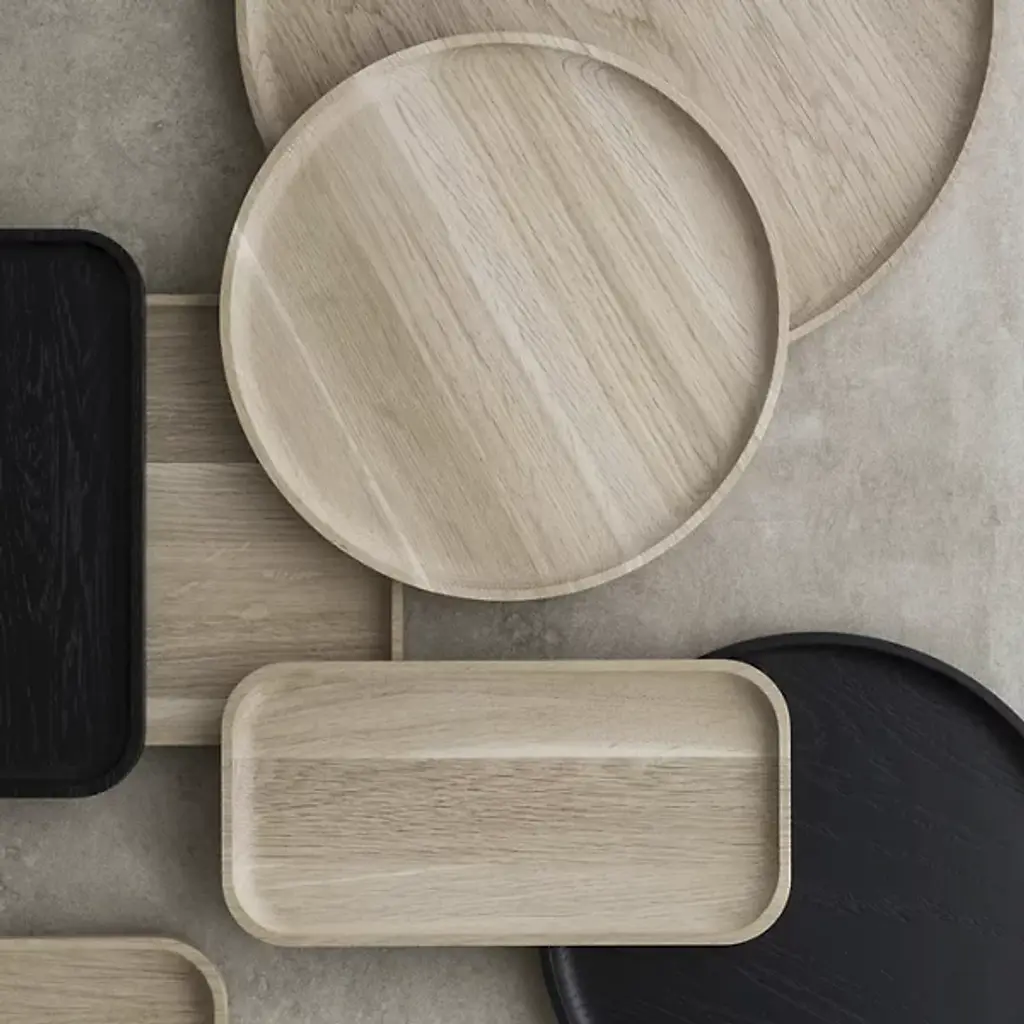 The OKU Oak Round Tray from Blomus exemplifies how thoughtful design can turn everyday items into objects of beauty and purpose. Ideal for intimate dinner parties to stylish coffee table arrangements, this tray makes a striking statement whether laden with hors d'oeuvres or showcasing cherished objects. Sourced from FSC Certified Northern European oak, it embodies the brand’s commitment to sustainable design. The OKU Oak Round Tray's durable construction ensures longevity, while its smooth surface invites tactile appreciation.