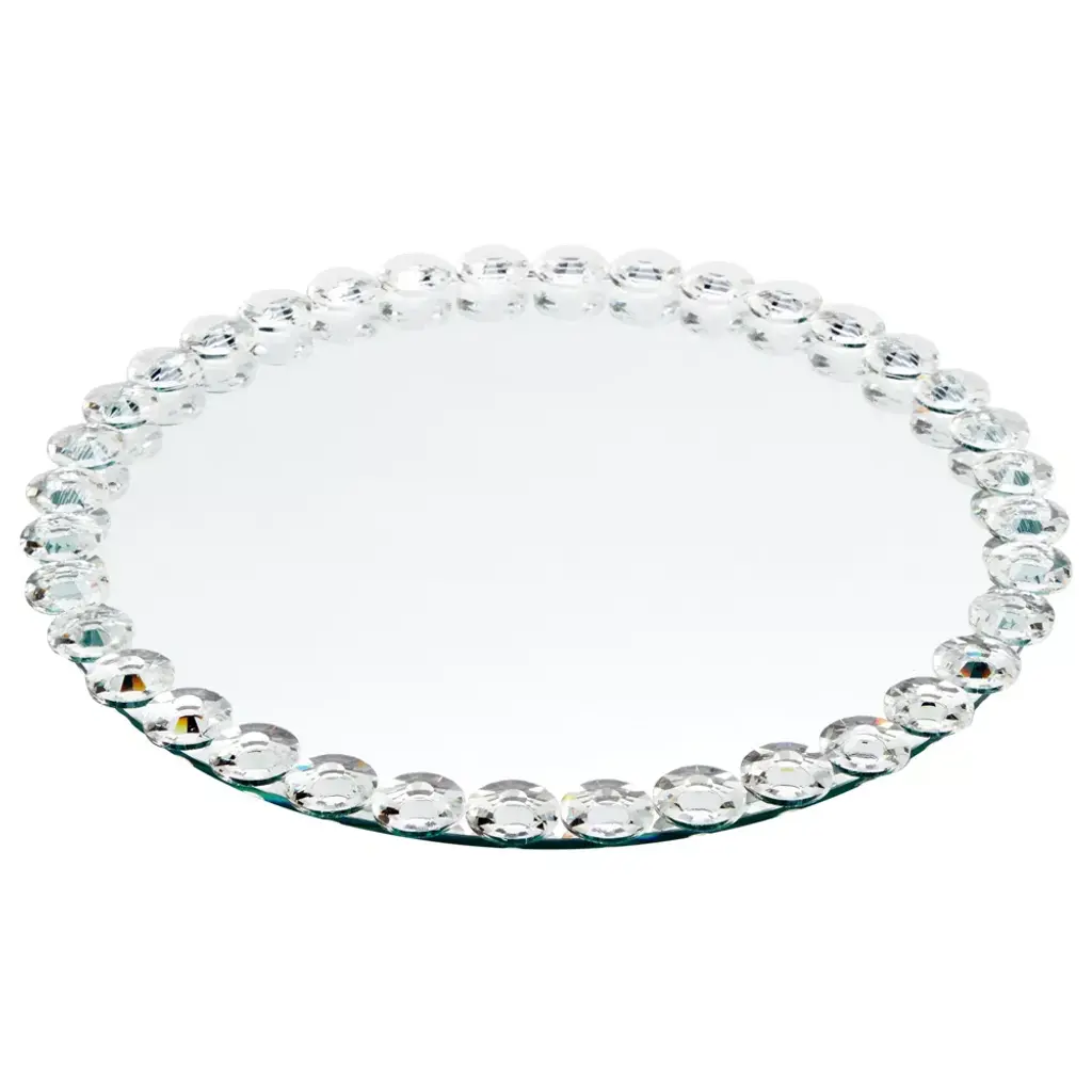 Our vanity mirrored tray is the perfect addition to any home decor with its elegant crystal border and reflective surface. It can be placed on a dining table, countertop, or vanity, instantly elevating the look of your space while providing a practical solution for organization. This circular mirror tray for coffee table holds various small items, such as remote controls, makeup, glasses, and more. Its versatile design makes it a great addition to any room in your home, from the living room to the bedroom. The reflective surface of the tray adds depth and dimension to any space, while the crystal border adds a touch of elegance and sophistication. In addition to its aesthetic appeal, this diamond perfume tray is practical and functional. Its sturdy construction ensures it can safely hold and transport various items, making it an excellent choice for everyday use. Whether you're using it to display decorative items or serve food and drinks to guests, this fragile crystal perfume tray will surely impress and have them glance at their reflection.