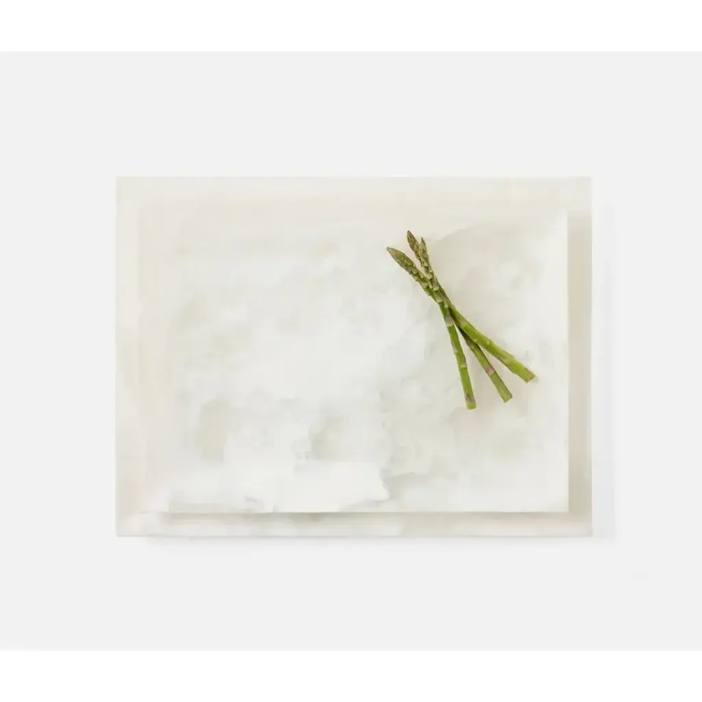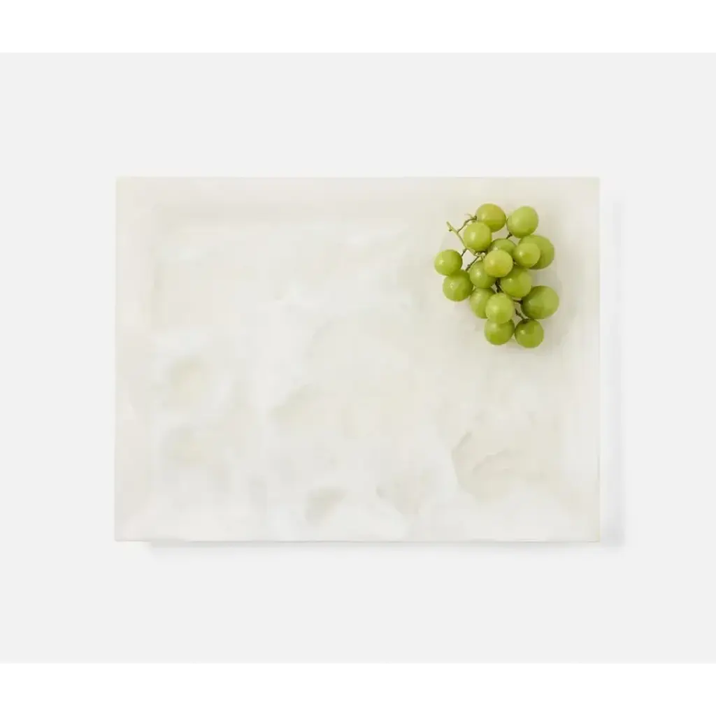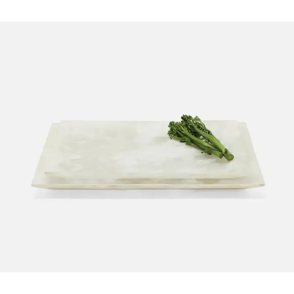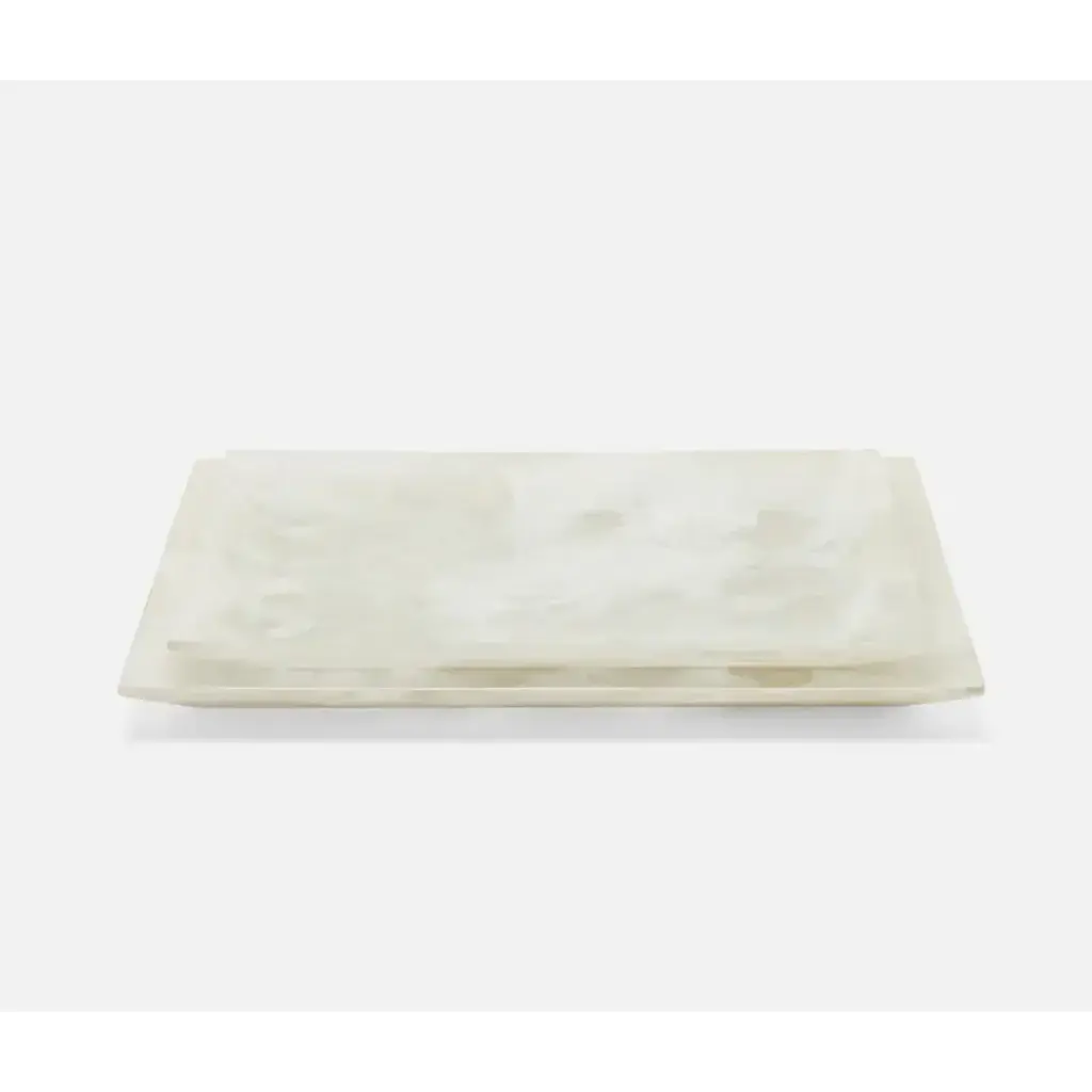 Olena White Swirled, Rectangular Serving Tray, Resin, S/2