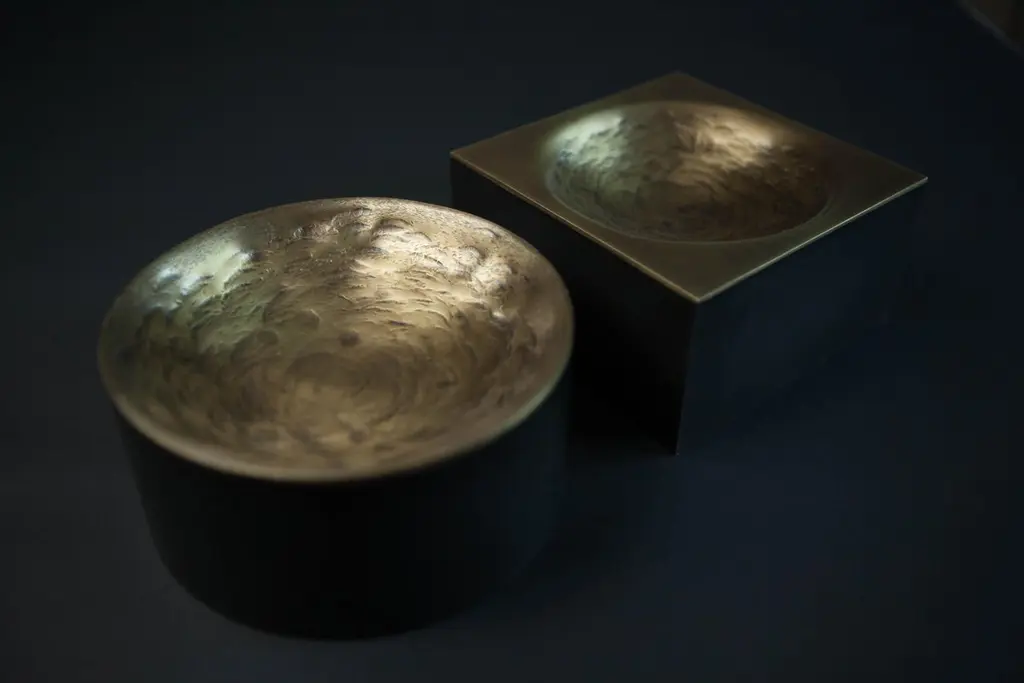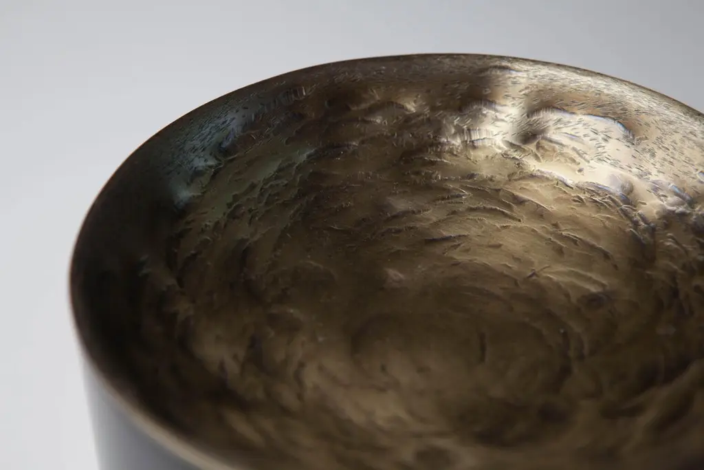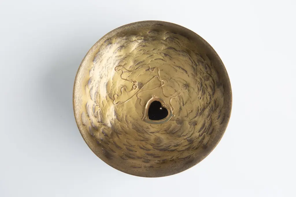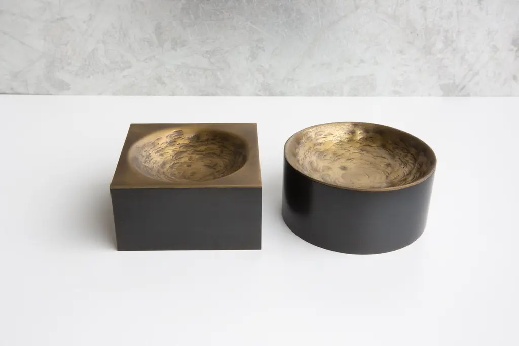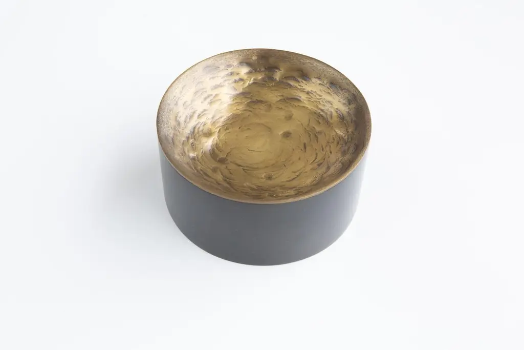OLIVIA 6" round handcrafted valet tray bowl has a smooth blackened bronzed steel outside with an organic hand hammered brass top. Each handcrafted piece is made to order, resulting in all markings being unique, no two items are the same.Customization available. Please enquire for pricing on custom pieces.For indoor use only.Designed and handcrafted by Soraya OsorioLIA 6" Round valet tray bowl is also available. Visit our Storefront listing for details.