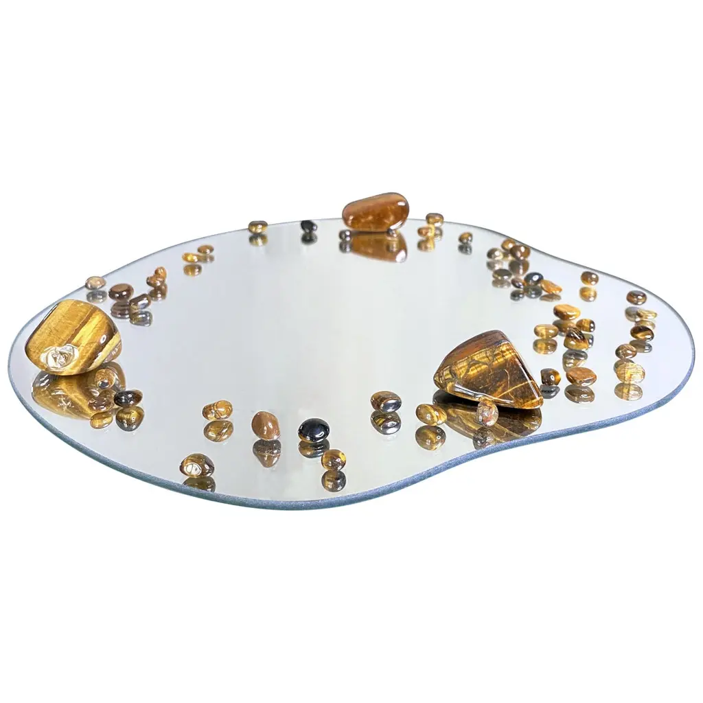 Organic Mirrored Tray, Adorned With Amethysts, Handmade By Aline Erbeia