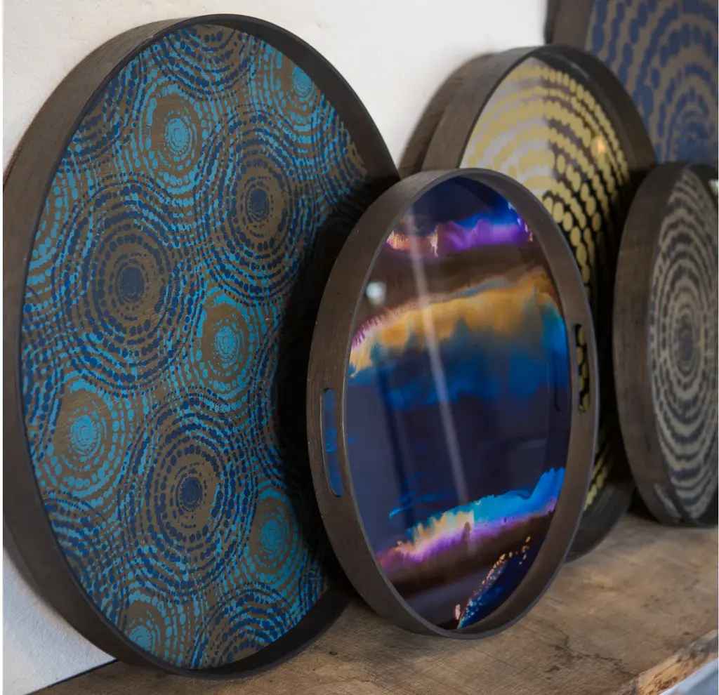 A subdued color palette meets captivating motifs inspired by nature and travel. This oblong Bronze mirror tray experiments with the balance between rich patterns offset with muted tones, revealing the beauty behind the deceivingly ordinary subjects from which inspiration is drawn. In doing so, this collection captures the essence of timelessness.