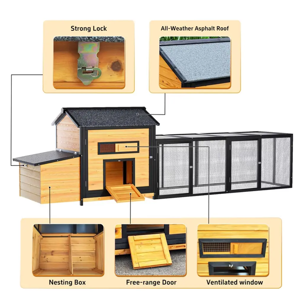 Orrd 118" Large Wooden Chicken Coop With Nesting Box, Leak-proof Tray & Asphalt Roof – Secure Outdoor Hen House For Backyard