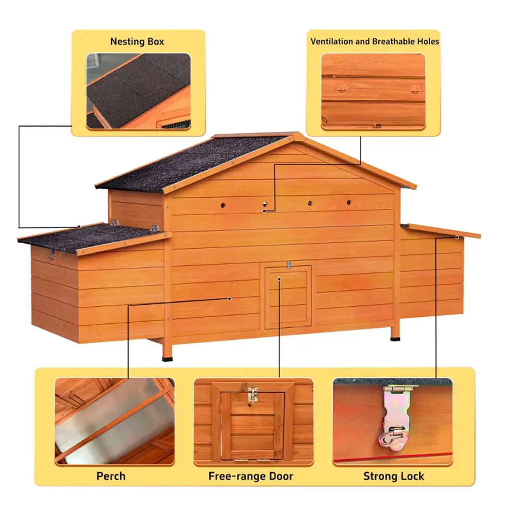 Orrd Large Wooden Chicken Coop With Nesting Box, Waterproof Roof & Pull-out Tray Hen House