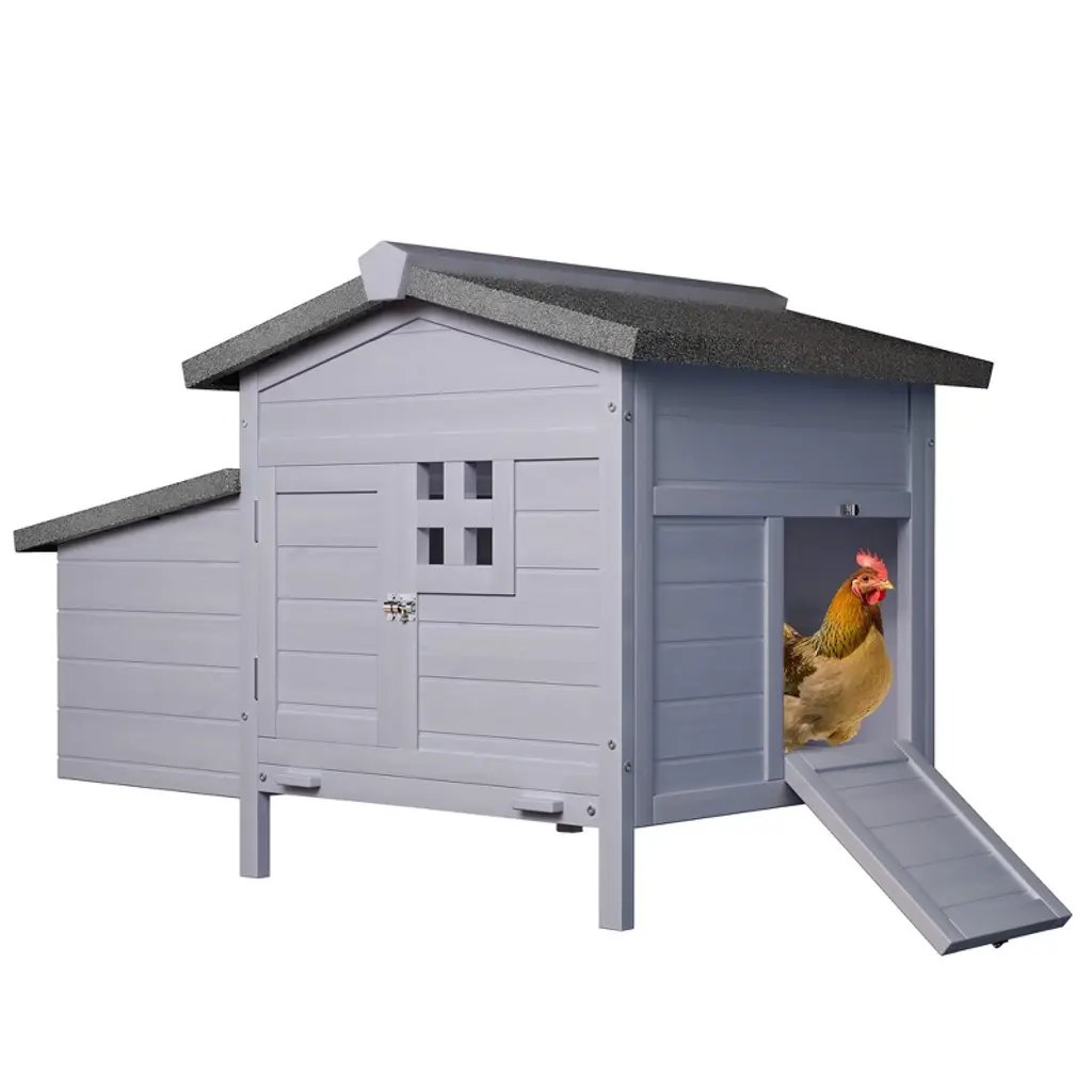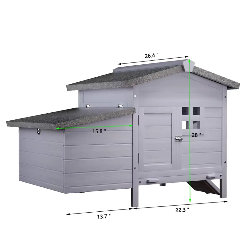 Orrd Outdoor Wooden Chicken Coop, Weatherproof With Asphalt Roof, Pull-out Tray, Nesting Box & Multiple Secure Doors