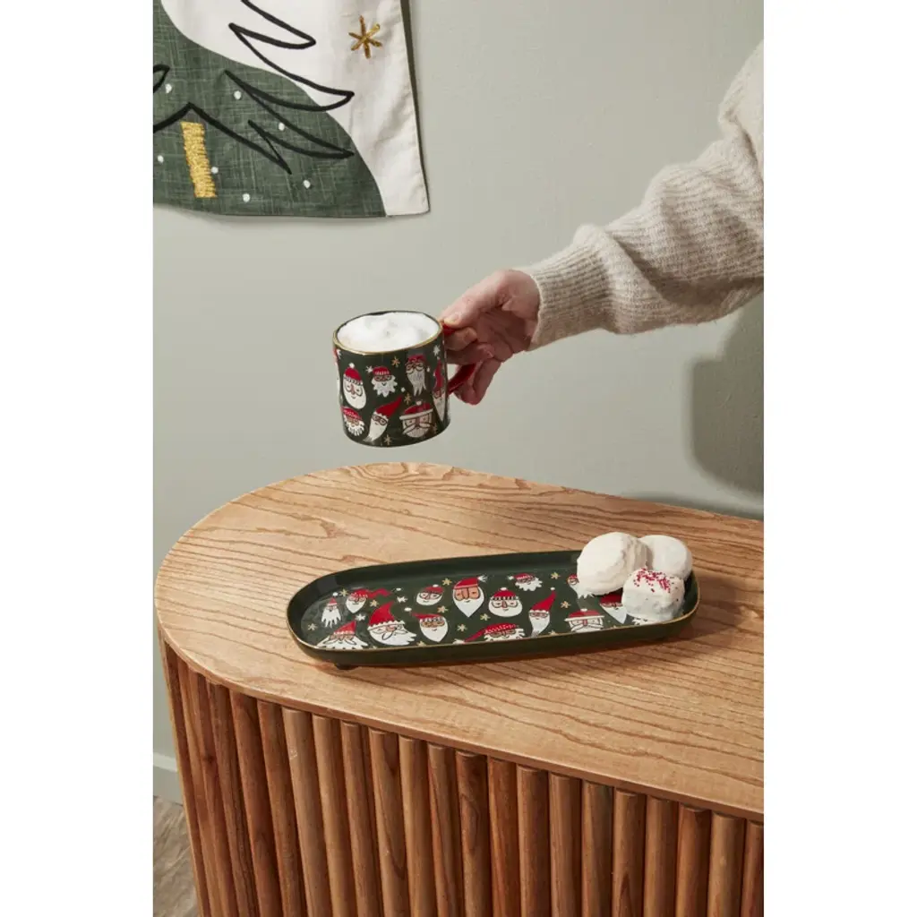 No matter what you're serving, like cookies for Santa, the Santa tray will make everyone smile. This hand-painted red & green glazed ceramic tray features a variety of jovial Santa faces & metallic gold details & pairs with the matching mug.