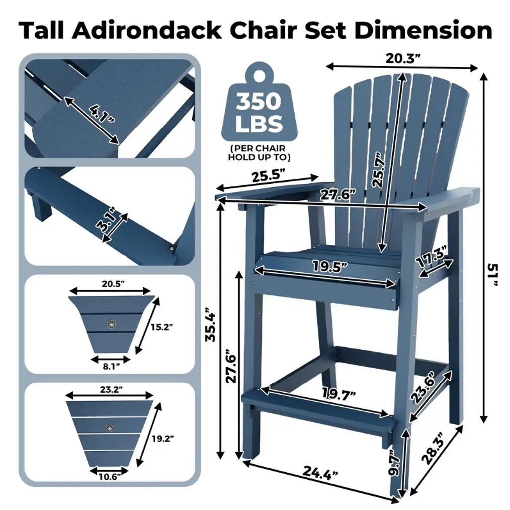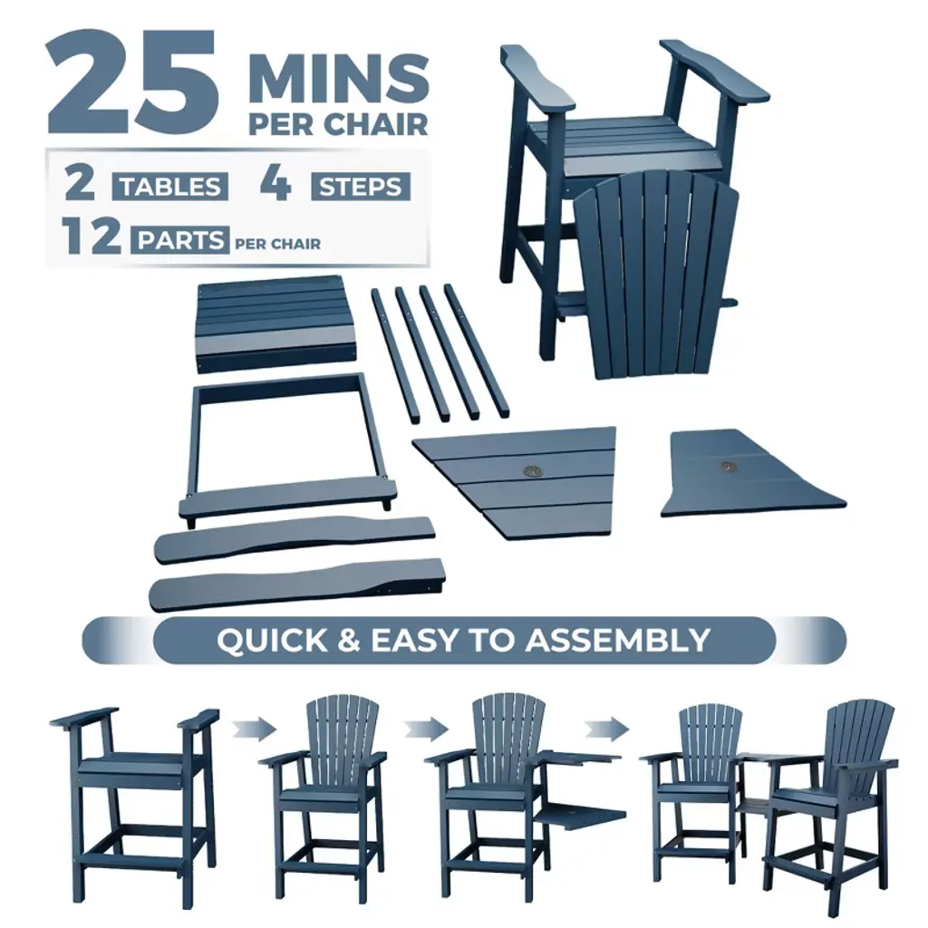 TROPOW Recycled Poly Adirondack Barstool Set with Connecting Tray - Premium Outdoor Seating (Set of 2, Grey)1?? Superior Hybrid Construction? Durable resin frame with weather-resistant properties ? Premium acacia wood seating surface (sustainably sourced) ? 108.9 lb total weight for exceptional stability2?? Ergonomic L-Shape Design? 51.18" high backrest for optimal lumbar support ? 28.15" extra-wide seat accommodates all body types ? Contoured acacia wood seat enhances comfort3?? Smart Connecting System? Removable center tray for shared convenience ? 35 lb tray capacity holds drinks and snacks ? Tool-free installation for quick setup4?? All-Season Performance? UV-resistant grey finish (RAL 7000 standard) ? -30¡ãF to 120¡ãF temperature range ? Mold/mildew resistant construction5?? Premium 2-Piece Set? Coordinating grey color scheme ? Space-efficient L-shape configuration ? 350 lb weight capacity per stool?? Technical Specifications: ? Single Unit Dimensions: 27.56"D ¡Á 28.15"W ¡Á 51.18"H ? Frame Material: Reinforced resin ? Seat Material: Grade-A acacia wood ? Set Weight: 108.9 lbs?? Quality Features: ¡ú 100% recycled poly components ¡ú IP55 weather resistance rating ¡ú Commercial-grade durability?? Ideal For: ? Outdoor kitchens ? Poolside bars ? Waterfront properties ? Rooftop terraces?? Maintenance: ? Annual wood conditioning recommended ? Mild soap cleaning for resin parts ? Winter storage advised in extreme climates?? Package Includes: ?? 2 Adirondack barstools ?? 1 connecting tray ?? Assembly hardwareEnhance your outdoor living with these premium hybrid barstools - where sustainable design meets exceptional comfort.