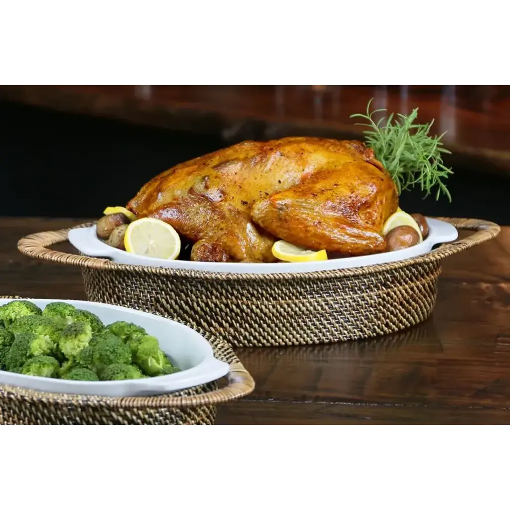 Oval Casserole Tray With Handles, Incl. Calaisio Stoneware Roaster Large 4Qt