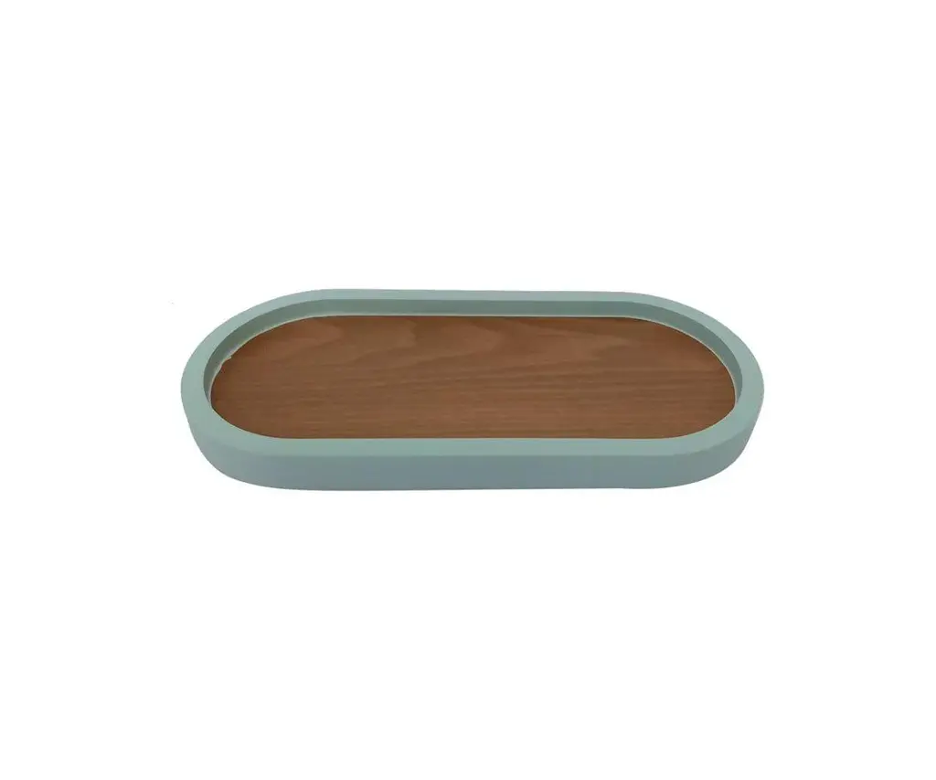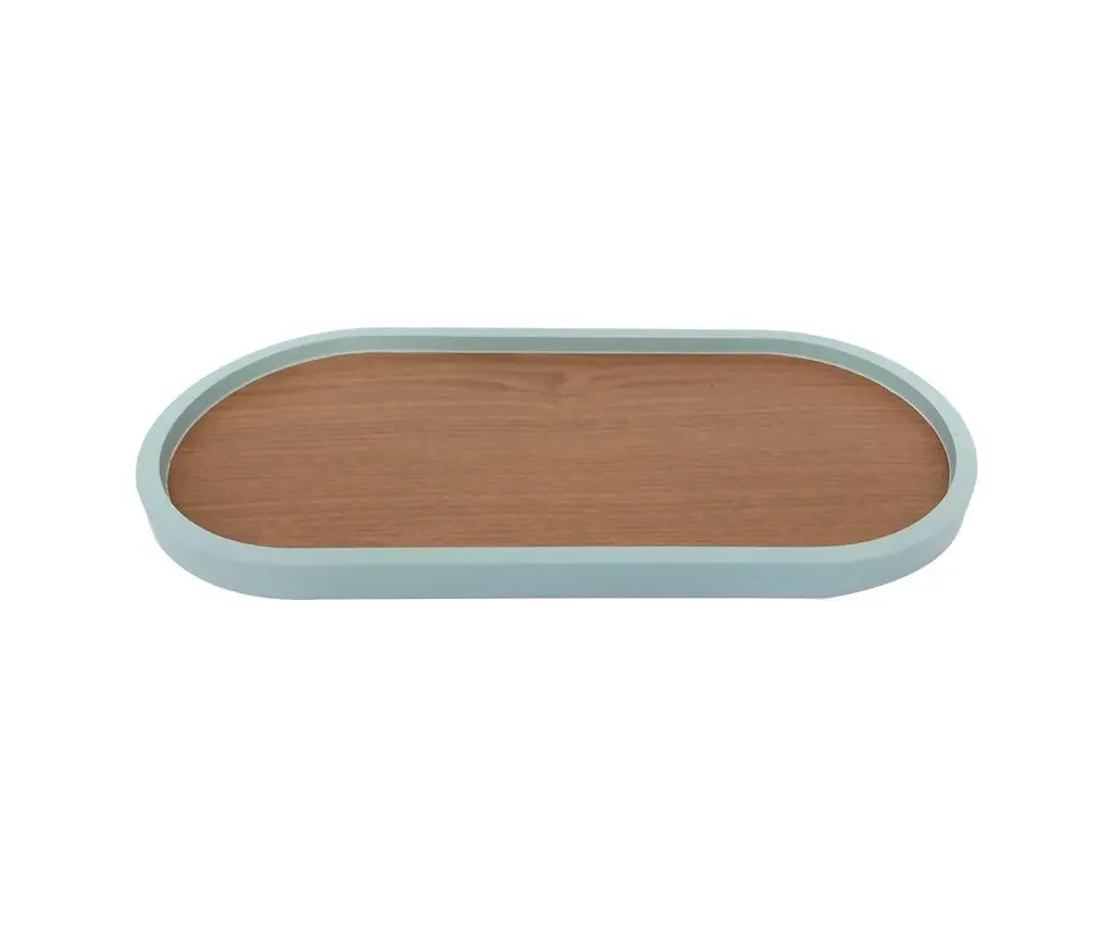 The Oval Lacquer Trim Tray comes ready to serve. Featuring a base in natural wood tones, this tray stands apart thanks to the pop of color that surrounds the outer rim. Use this charming decor piece as a way to extend your surface space by placing on an ottoman in front of your sofa, or as a way to beautifully organize your existing tabletop displays.