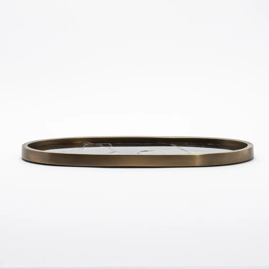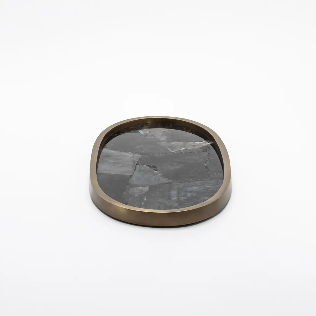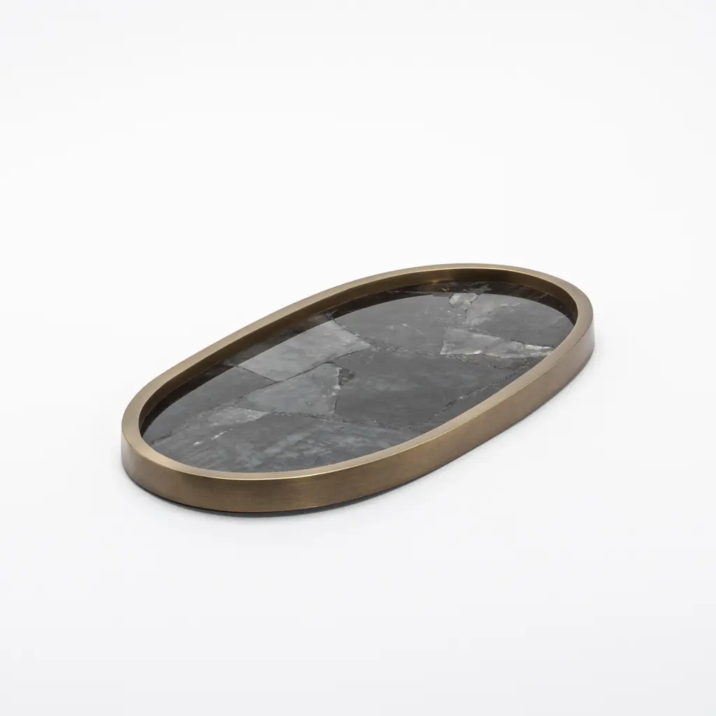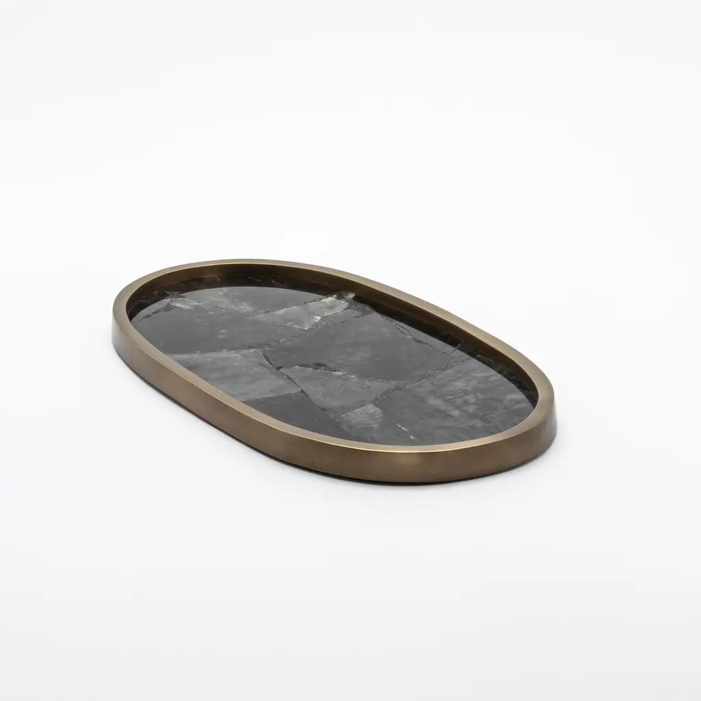 Oval Tray In Black Quartz With Bronze Patina Brass By Kifu Paris