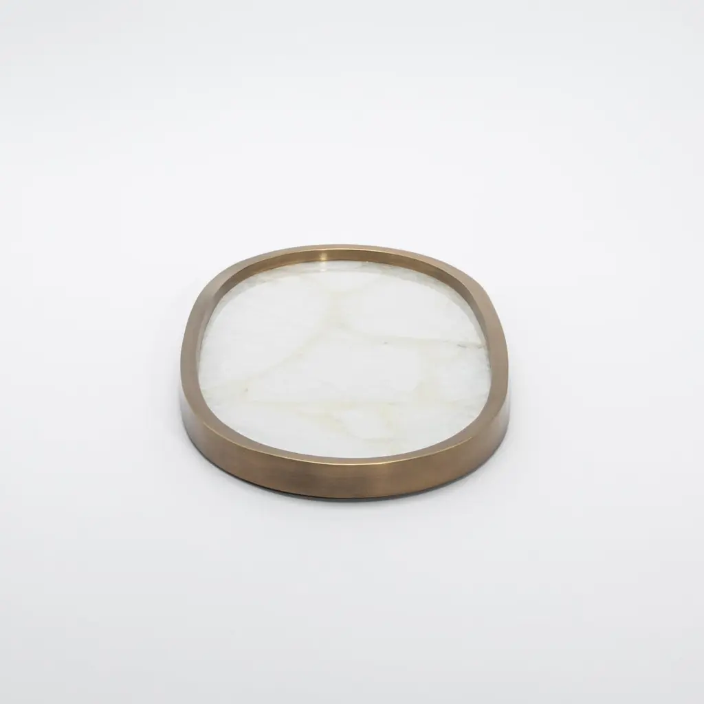 Oval Tray In White Quartz With Bronze Patina Brass By Kifu Paris