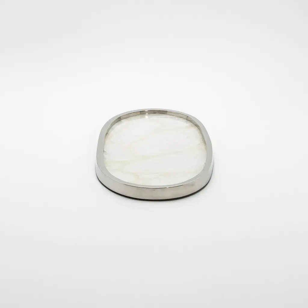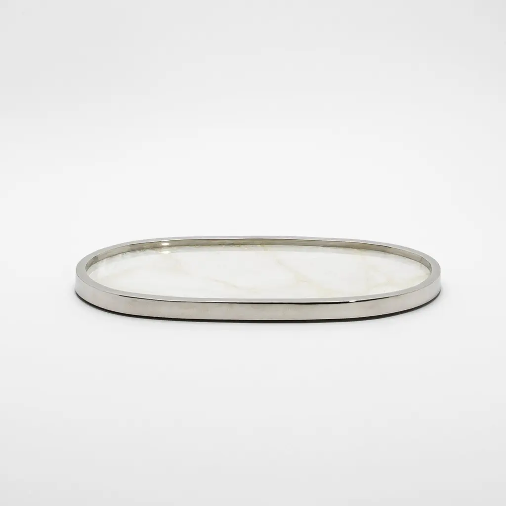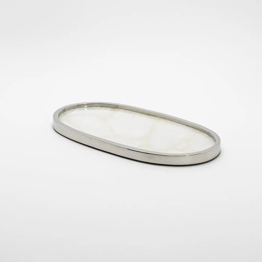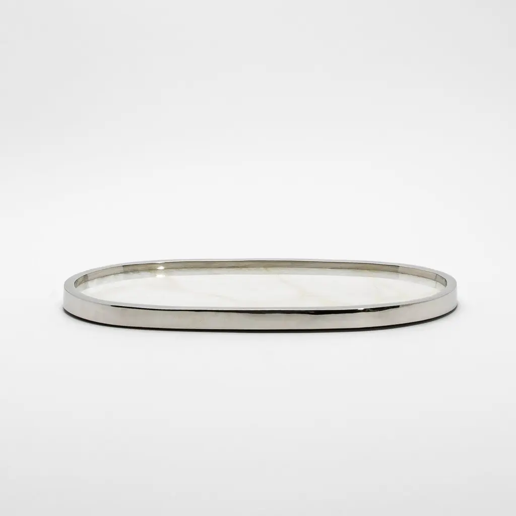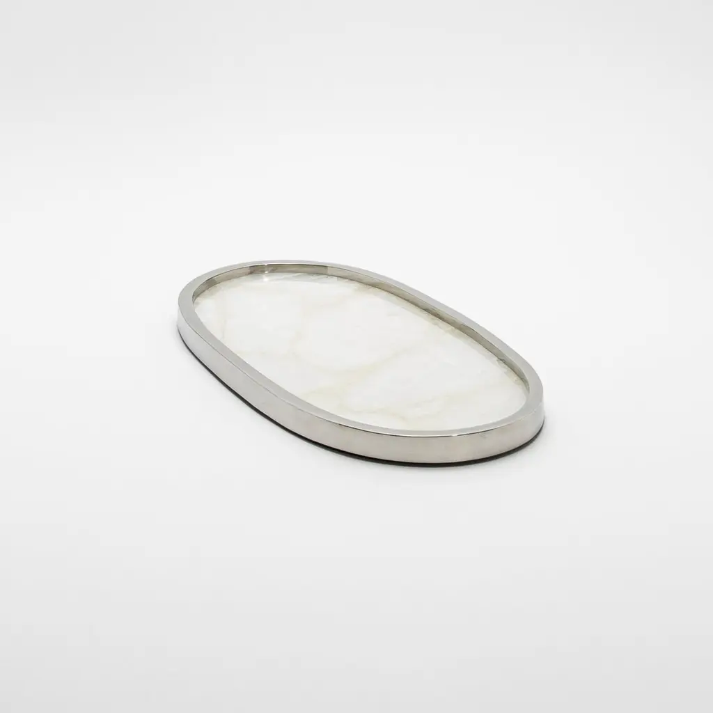 Oval Tray In White Quartz With Polished Stainless Steel By Kifu Paris
