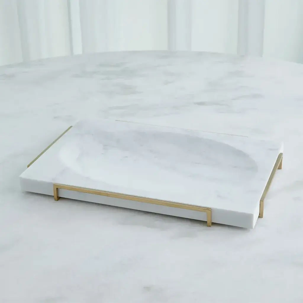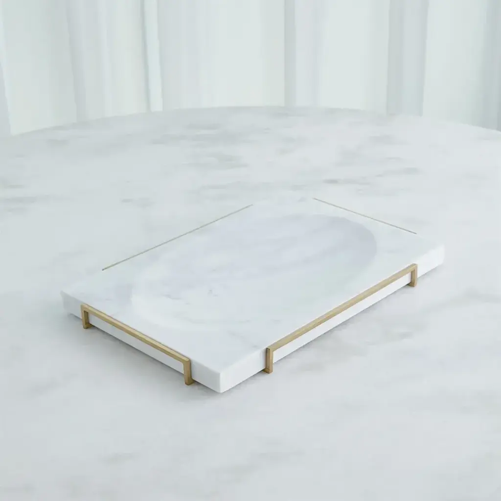 The Overture Trays are hand-formed marble with solid brass accents. These trays are food safe, so perfect for entertaining! As marble is a natural product, please be aware that there will always be variations in veining and color. This is to be expected and makes every marble product uniquely your own. From a fashion forward perspective, Global Views offers accessories, furniture, statement lighting, and an assortment of rugs and mirrors to add beauty and joy to your home.