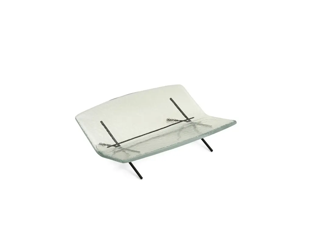Pair of Hakou B Trays by Mason EditionsDimensions: 36 × 30 × 11 cmMaterials: Glass and ironColours: transparent, fume or light pink glass + black metal baseAll the poetry, delicacy and charm of Japanese culture is apparent in Hakou, the line of fruit dishes and knick knack trays designed by Matteo Fiorini for Mason Editions. A sheet of glass crafted in a thickness of one centimetre, with a shape that recalls a leaf or a boat slightly tilted by the wind, appears to be suspended over a dainty base consisting of a series of metal rods, intersected on the shorter side to form a slender trestle. The sunlight comes through the glass gracefully, creating a play of lights and shadows.A clear footed fruit bowl that won’t go unnoticed, available in 3 different colours: clear glass, rose pink or smoked. Enjoy the singular beauty of Hakou, as each carefully handcrafted piece is unique.Mason Editions is an Italian company specialized in the production of design furniture, lighting solutions and accent pieces. Born from the lifelong passion for lighting and entrepreneurial spirit of Fabio and his partner Silvia, Mason Editions places itself halfway between fine art and exquisite craftsmanship. A collection of lighting, design objects and furnishing accessories, signed by artists Serena Confalonieri, Martina Bartoli and Matteo Fiorini, head of the creative direction.Mason Editions comes from the experience of an Italian lighting company placed in the Veneto region.This new brand of furniture elements was born from the meeting between the entrepreneur Fabio Mason and three international designers who designed the first collection for a sophisticated public. Therefore the collection wants to be eclectic and timeless.The Material contrast and fresh design, with essential shapes, mark the mason editions collection.In conclusion, the elegant Italian sign highlights proposals suitable for all environments.Mason editions is a set of experiences, artisans, and productive know-how that creates a capable system.