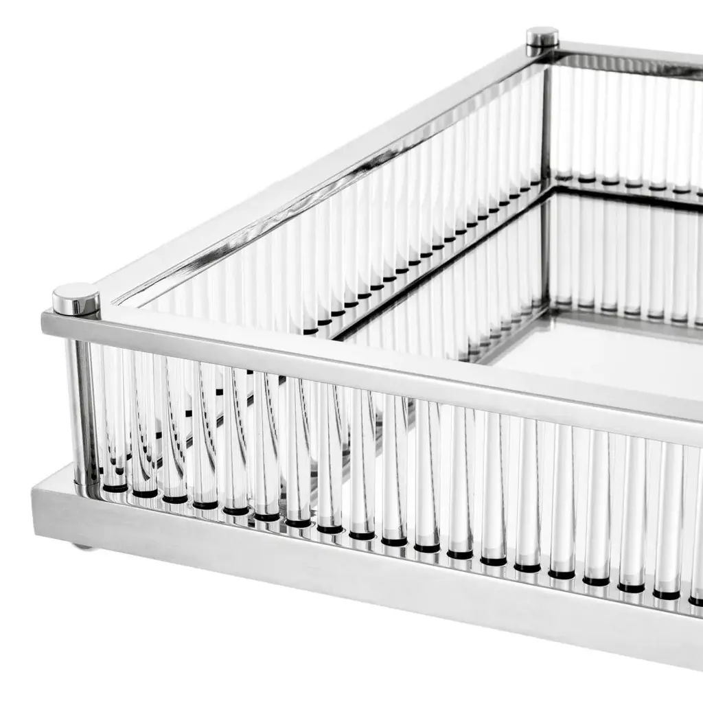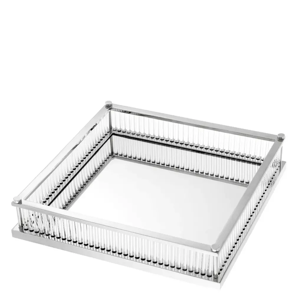 Pair of square trays, silver-plated metal, mirrored glass, and clear glass.Embellish your home with this decorative tray.This chic square tray features a mirrored glass base and clear glass stems in silver-plated metal. An elegant serving tray, also ideal as a storage tray for your keys or other items, or as a makeup tray.L. 39.5 W. 39.5 H. 9 cm