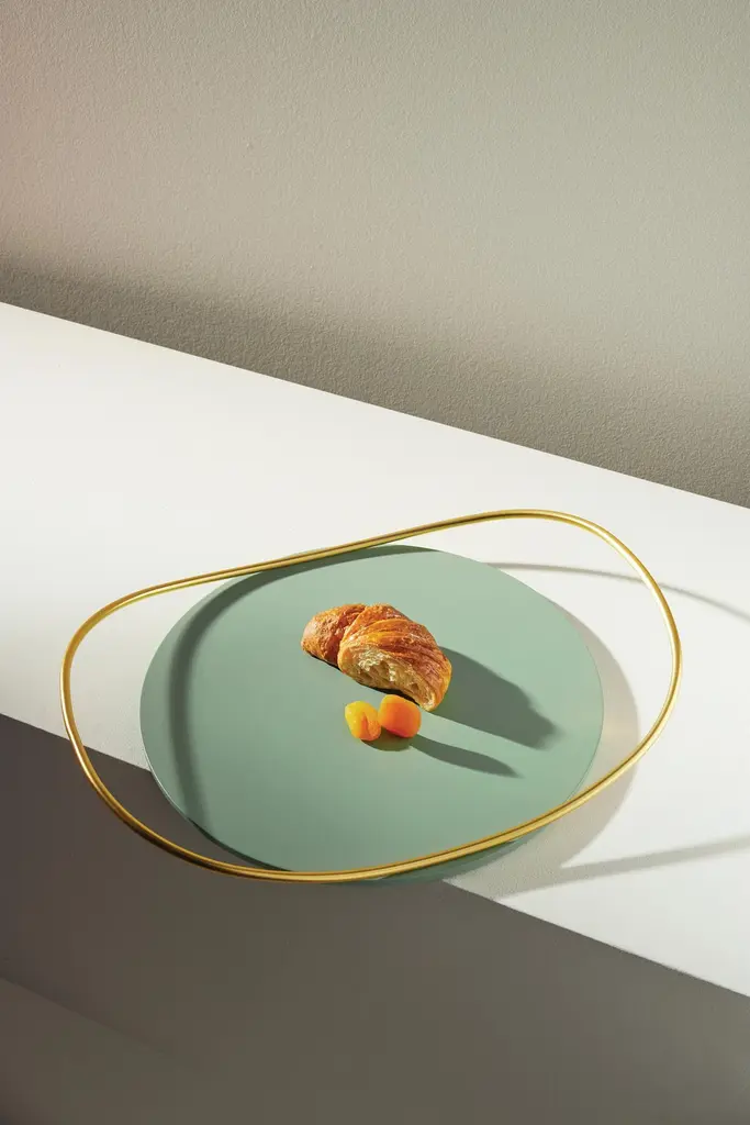 Pair of Taupe Touché B trays by Mason Editions.Dimensions: 36 × 47 × 6.7 cmMaterials: Iron and MDFColours: Taupe, cotto, burgundy, sage green, petrol green.A light metal rod that rests on the surface and then lifts up, almost touching the surface with a quick tap, a movement that defines the handles of Touché trays.The organic shape of the round base communicates with the thin tubular, giving the impression of a perpetual undulatory motion, which seems to vanish when the trays are looked at from above.This small round tray with an oval handle won’t go unnoticed in the eyes of your party and dinner guests.The round MDF base is available in several colours, with a slim handle in galvanized 24k gold. A versatile design object, used to serve food and drinks as well as display jewellery and bedroom vanity.Mason Editions is an Italian company specialized in the production of design furniture, lighting solutions, and accent pieces. Born from the lifelong passion for lighting and entrepreneurial spirit of Fabio and his partner Silvia, Mason Editions places itself halfway between fine art and exquisite craftsmanship. A collection of lighting, design objects, and furnishing accessories, signed by artists Serena Confalonieri, Martina Bartoli, and Matteo Fiorini, head of the creative direction.Mason Editions comes from the experience of an Italian lighting company placed in the Veneto region.This new brand of furniture elements was born from the meeting between the entrepreneur Fabio Mason and three international designers who designed the first collection for a sophisticated public. Therefore the collection wants to be eclectic and timeless.The Material contrast and fresh design, with essential shapes, mark the mason editions collection.In conclusion, the elegant Italian sign highlights proposals suitable for all environments.Mason editions is a set of experiences, artisans, and productive know-how that creates a capable system.