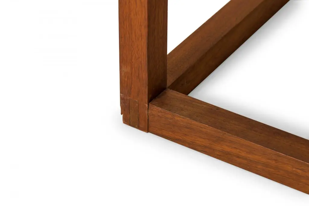 Pair Of Tony Paul Gray Leather Upholstered Wooden Cube Stool With Slide Tray
