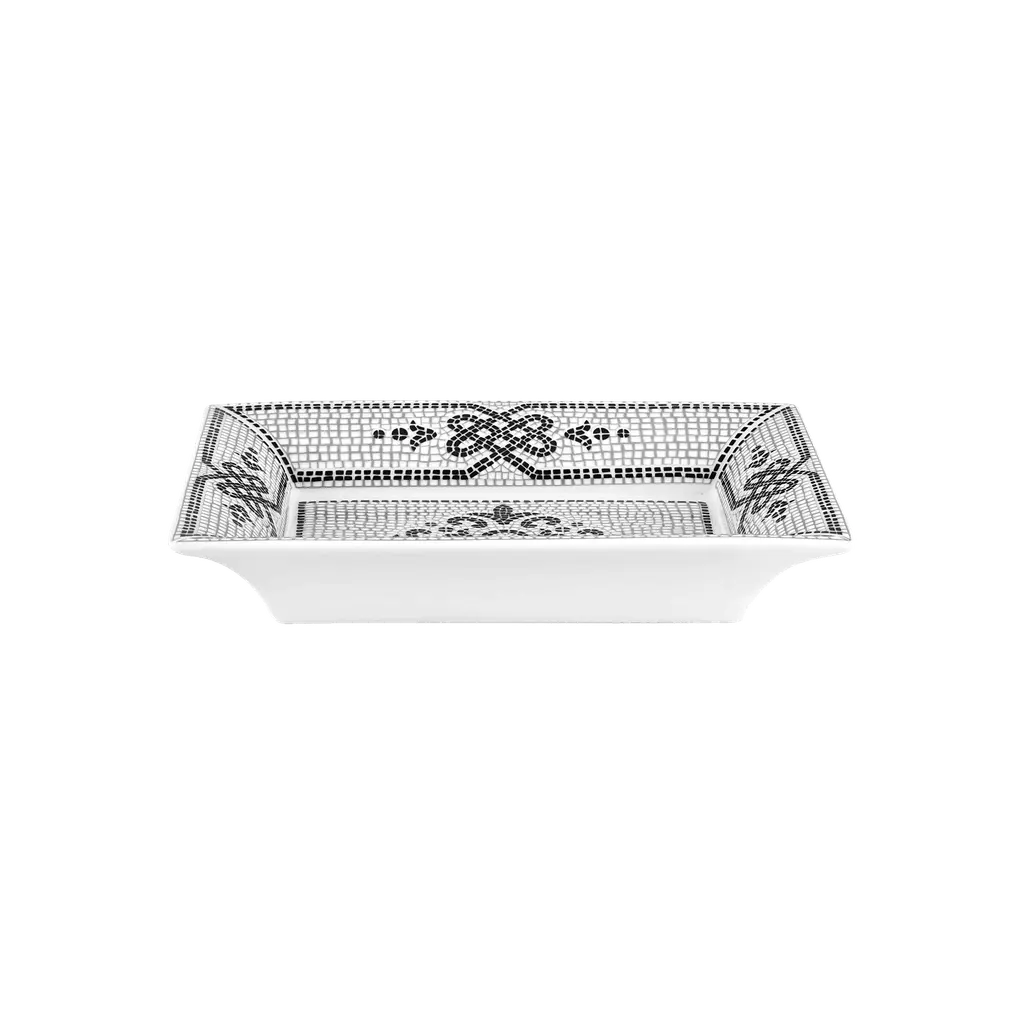 A stylish design that will complement both classic and modern decors, this empty pocket tray will make a statement when showcased on a console or coffee table. Handcrafted of pure, white porcelain, its square silhouette is embellished with a bold pattern of gray circles.