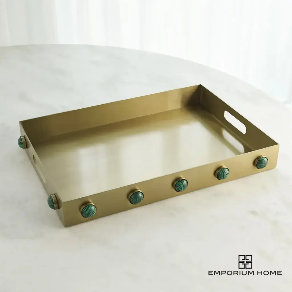 Our Pandora Tray mixes the artistry of fine lapidary work with the practicality of stylish living. Handset malachite stones adorn a gleaming satin brass tray, bringing artful sophistication to any space. From a fashion forward perspective, Global Views offers accessories, furniture, statement lighting, and an assortment of rugs and mirrors to add beauty and joy to your home.