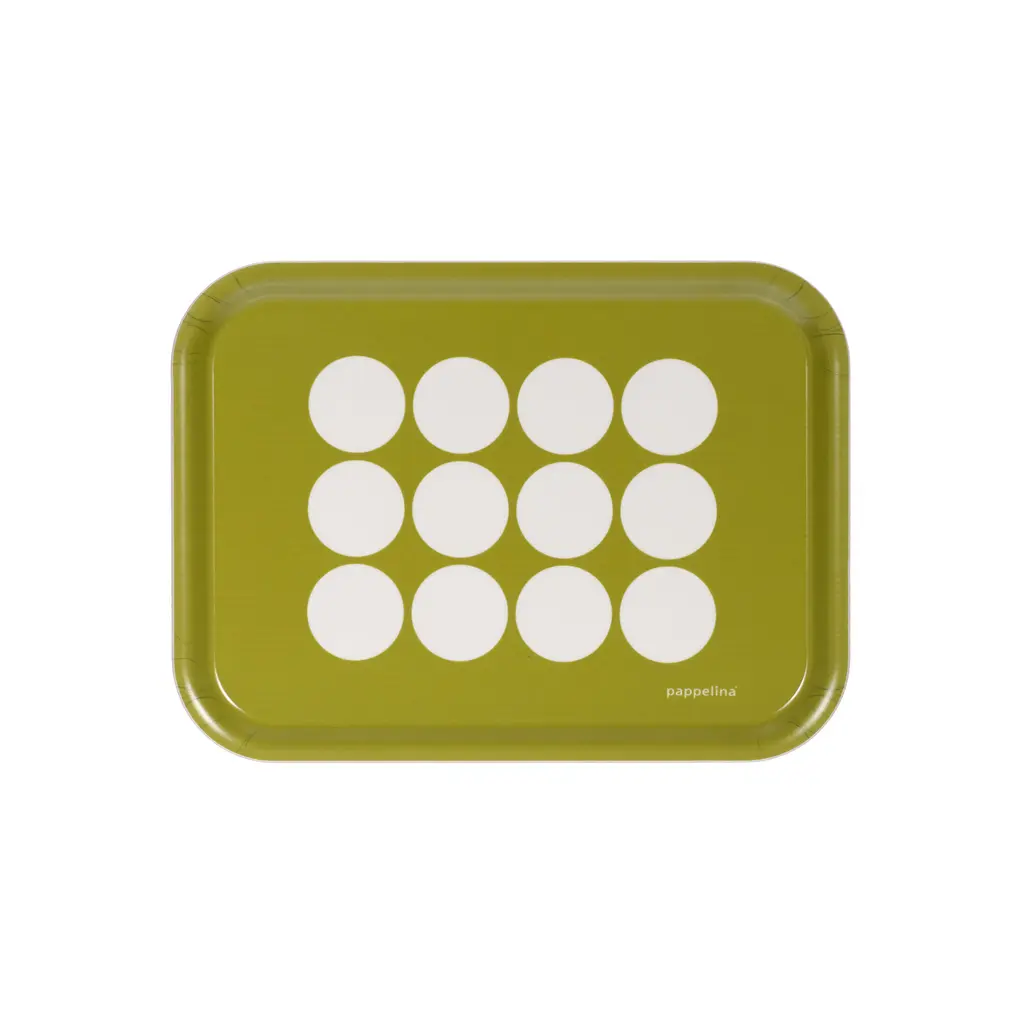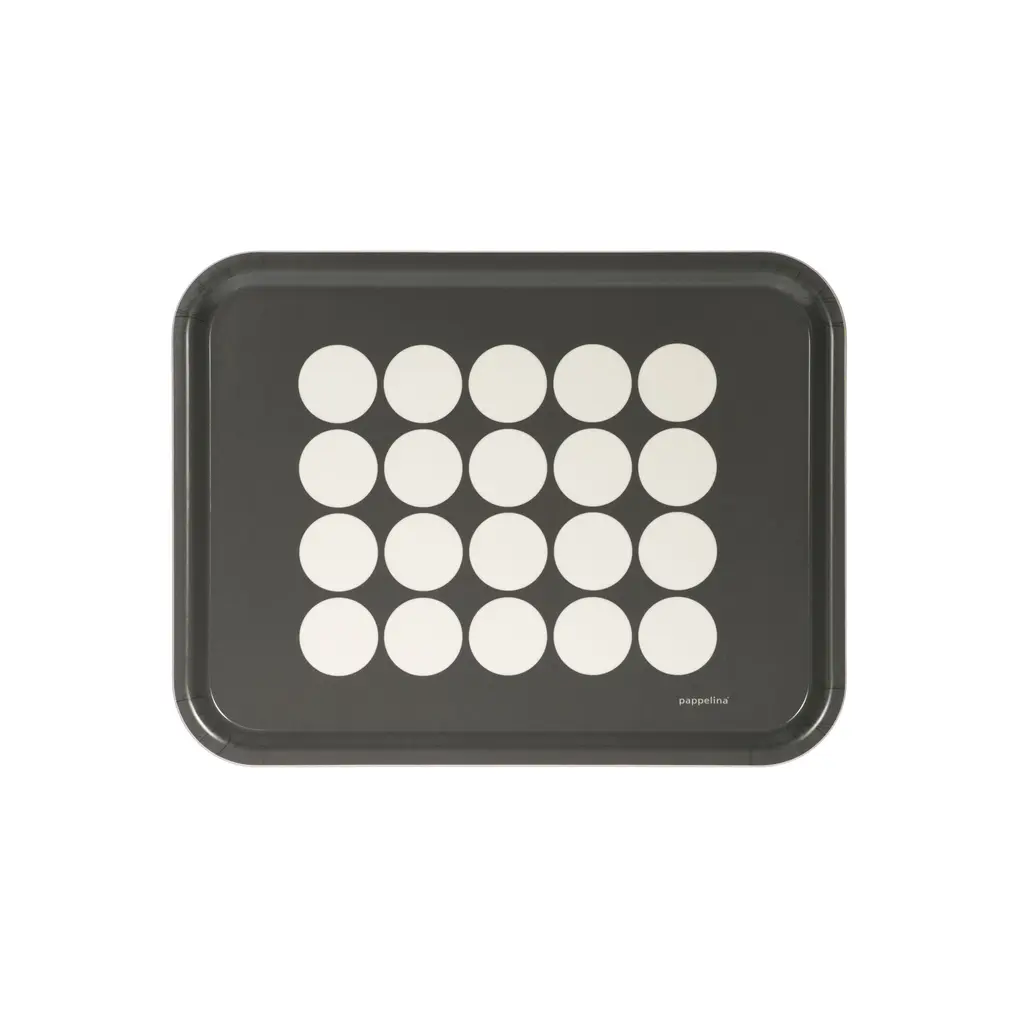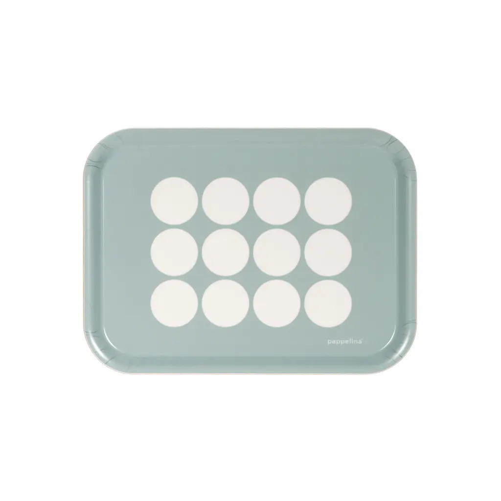 Bring a touch of playfulness to the food and drink serving ritual with the Pappelina Fia Tray. Stylish and fun at the same time, this tray has a rectangular form and a circle pattern set against a darker background. Every tray is made by hand in a family-run workshop in Sweden. Crafted from quality birch veneer, Fia is durable as well as water and heat proof, food contact approved, and FSC/PEFC certified. This means that you can use it to serve cold or hot drinks along with food. Available in 20×27 cm or 33×43 cm, in Apple, Charcoal or Pale Turquoise colors.