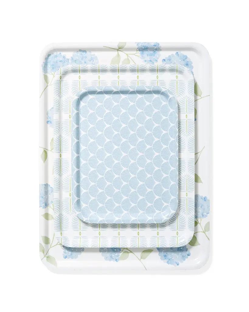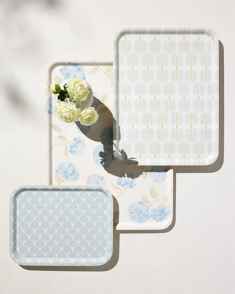A display of summery symbols from the garden and sea. Serve up something special. Crafted of birch.