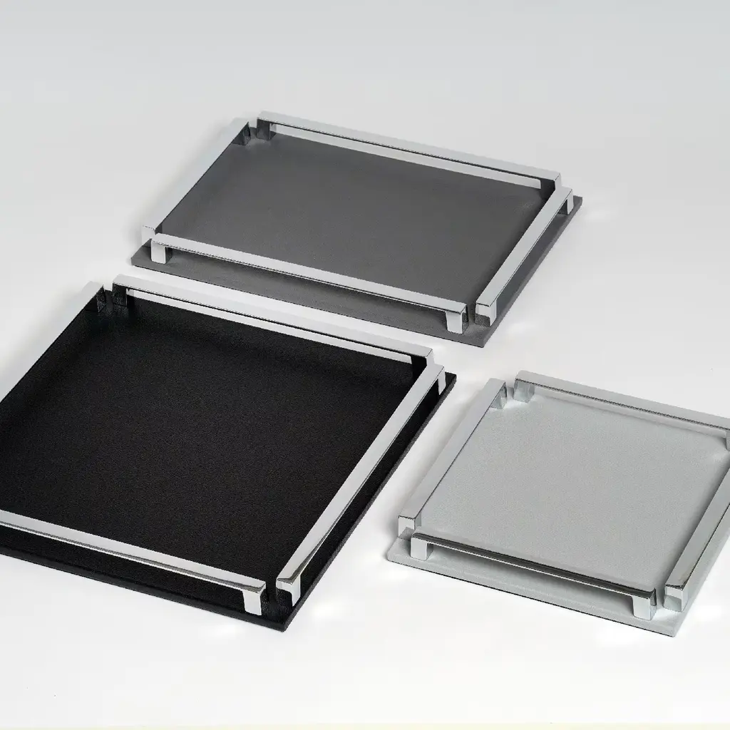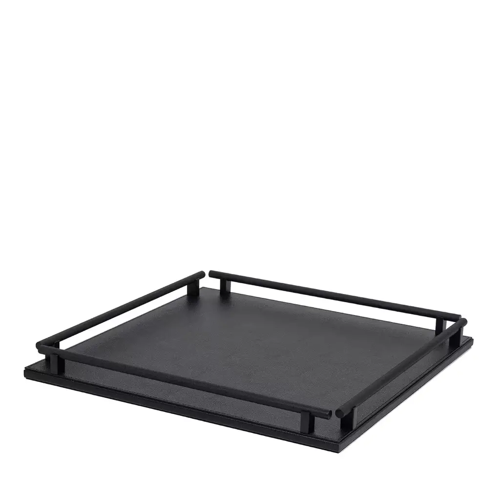 Paul Rectangular Gray Leather Tray