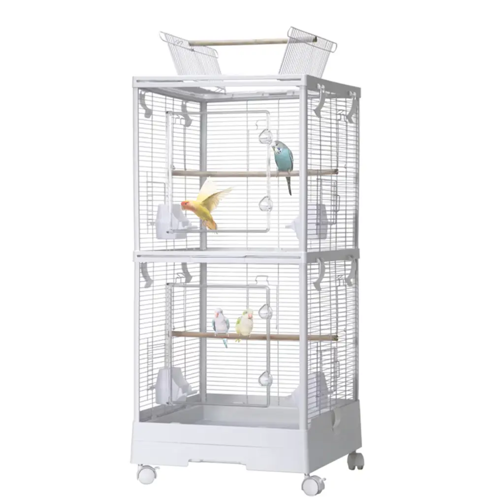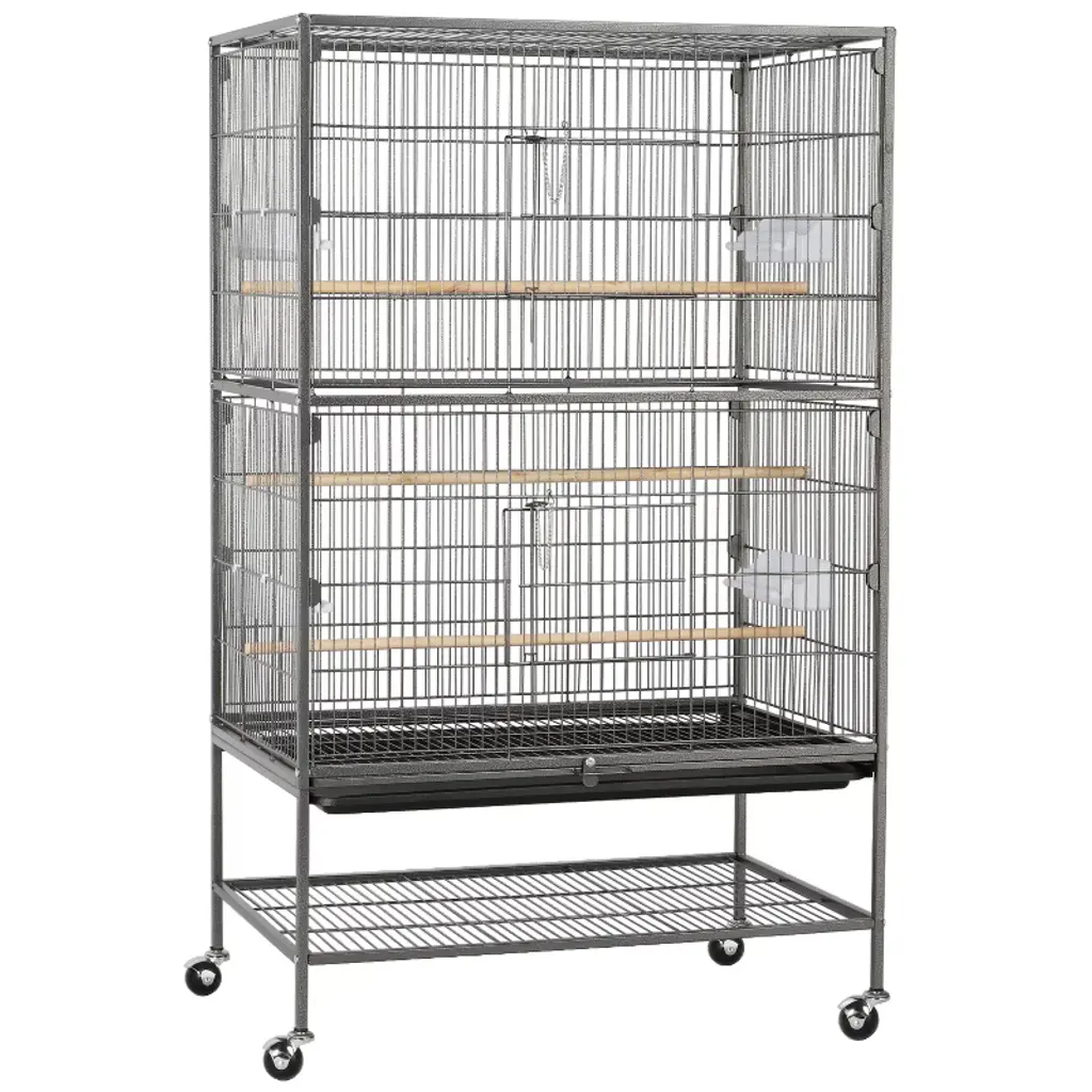 Birds need space for their wingspan, and this double bird cage allows impressive amounts of room from left to right, offering a distance that's wide for a homey environment. The doors on all sides allow easy access wherever you're coming from, making feeding quick and easy when you're on the go. This metal bird cage offers plenty of living space and room for activity. Keep your animals safe and happy with this indoor aviary from PawHut.