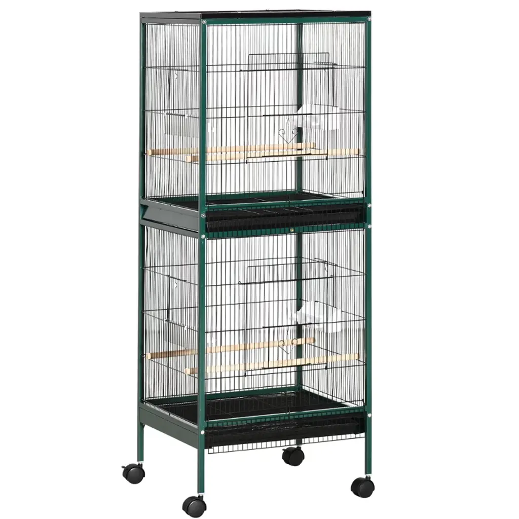 Birds need space for their wingspan, and this double bird cage allows impressive amounts of room from left to right, offering a distance that's wide for a homey environment. The doors on all sides allow easy access wherever you're coming from, making feeding quick and easy when you're on the go. This metal bird cage offers plenty of living space and room for activity. Keep your animals safe and happy with this indoor aviary from PawHut.