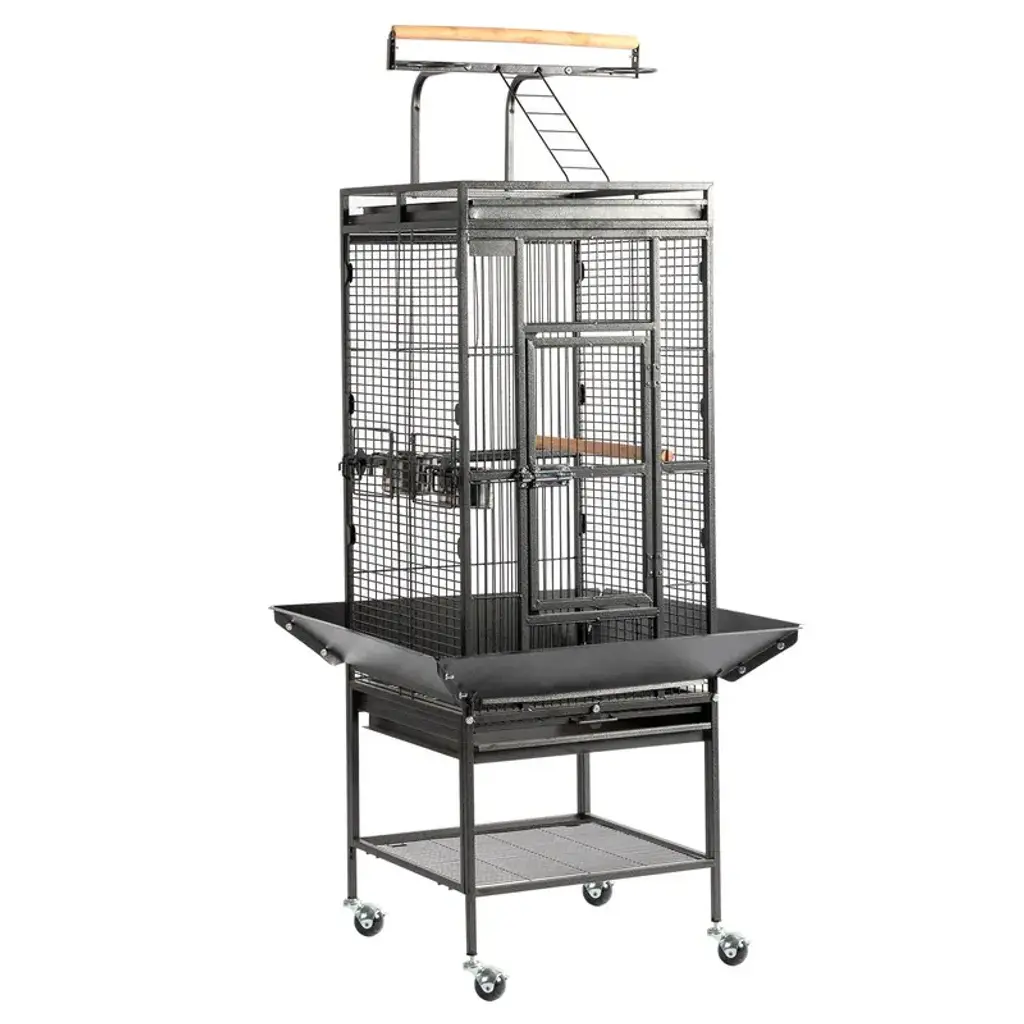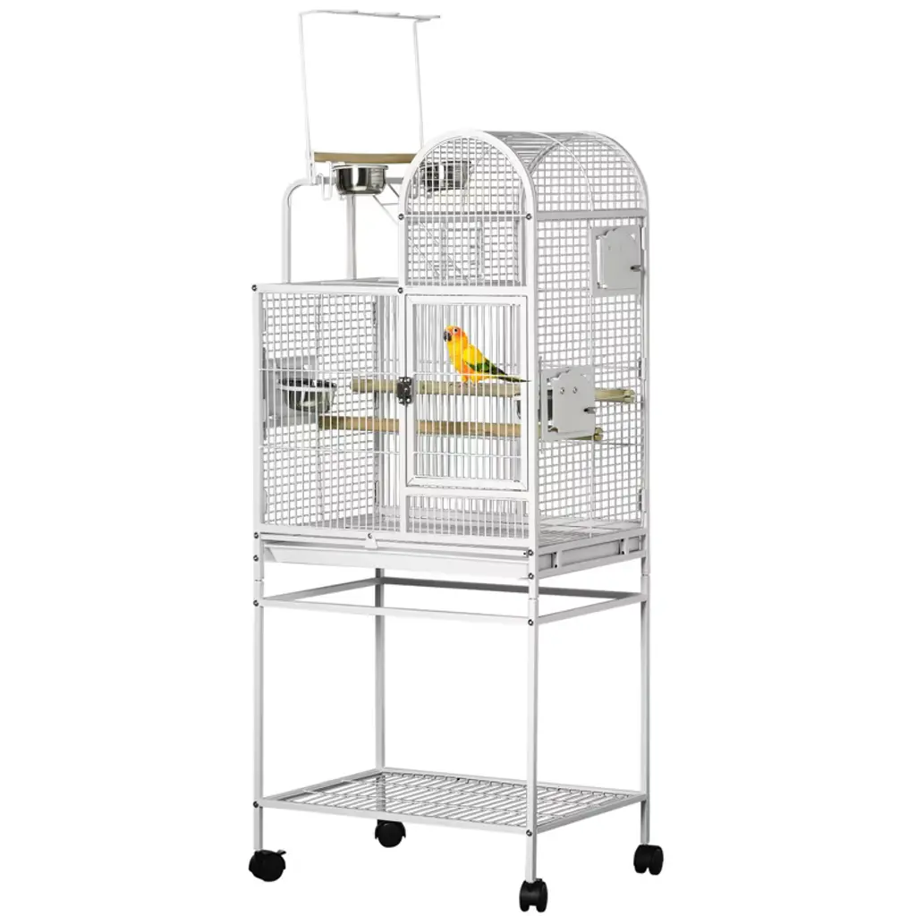 Pawhut 55" Large Parrot Cage With Toy Hooks Bird Perch, Tray, Food Cups, Rolling Stand, Bird Cage For Cockatiels, Parakeets, Lovebirds