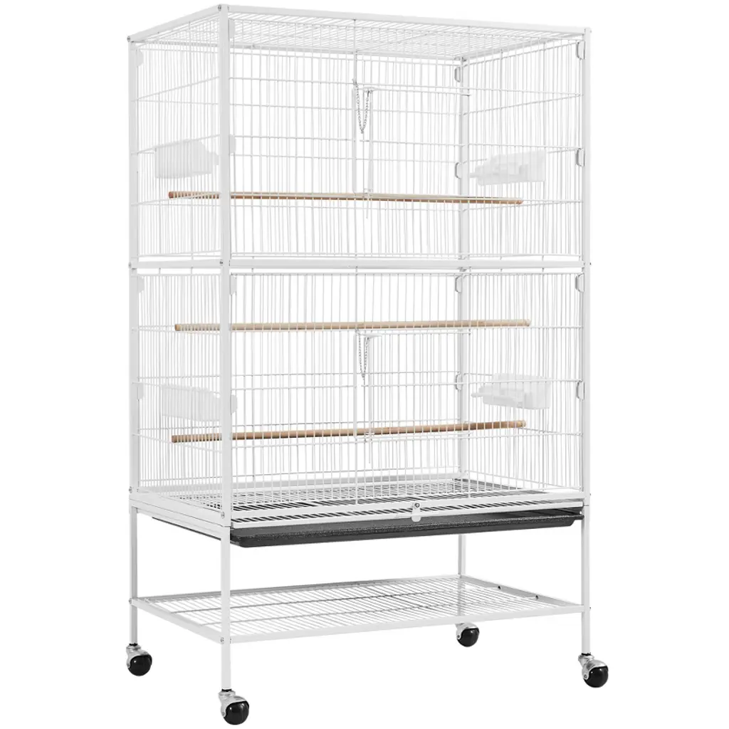Descriptions:Discover the PawHut bunny cage, a spacious 5-tier haven with 0.5" bar spacing. This pet cage suits various pets, including rabbits, ferrets, and chinchillas. Pet-friendly features like cloth-covered ramps and a deep bottom for lots of bedding ensure comfort and safety. Easily accessible with large doors, this sugar glider cage keeps your pet secure and your mind at ease.Features:● 5-tier design maximizes space for multiple small animals● 0.5" bar spacing prevents escapes, safe for tiny pets● Cloth-covered ramps prevent slipping, protect pet's feet● 6.3" deep bottom allows lots of bedding and enhances comfort● Four large doors and slide-out tray simplify access and cleaning● Bottom storage shelf keeps supplies handy, organized● Constructed from steel and PP, it ensures safety● Four wheels, two with brakes, for easy movementSpecification:● Color: Dark Gray● Material: Steel, PP● Overall Dimensions: 34.6" L x 18.9" W x 59.3" H● Inner Cage: 34.6" L x 18.9" W x 43.3" H (Tray Included)● Door: 8.7" L x 10.2" W (Front), 9.8" L x 13.4" (Side)● Platform: 17.3" L x 9.8" W● Ramp: 13.8" L x 4.7" W● Hammock: 20.5" L x 16.9" W● Tray: 33.1" L x 18.5" W x 6.3" H● Storage Shelf: 34.6" L x 18.9" W● Wheel Size: 2"● Bar Spacing: 0.5"● Item Label: D51-447V01CG