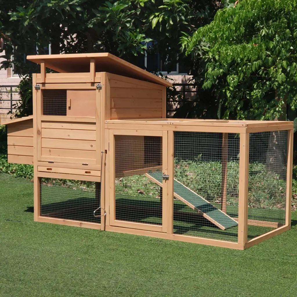 The PawHut outdoor chicken coop kit is the perfect home for chickens. This house is set directly on the ground, so your poultrys can feel the grass between their toes or claws. The roof can be opened up from above for easy animal access. The living area provides a secure place for your poultrys to sleep comfortably. With its outstanding durability, style and function, this PawHut chicken pen is a good choice for your poultrys.