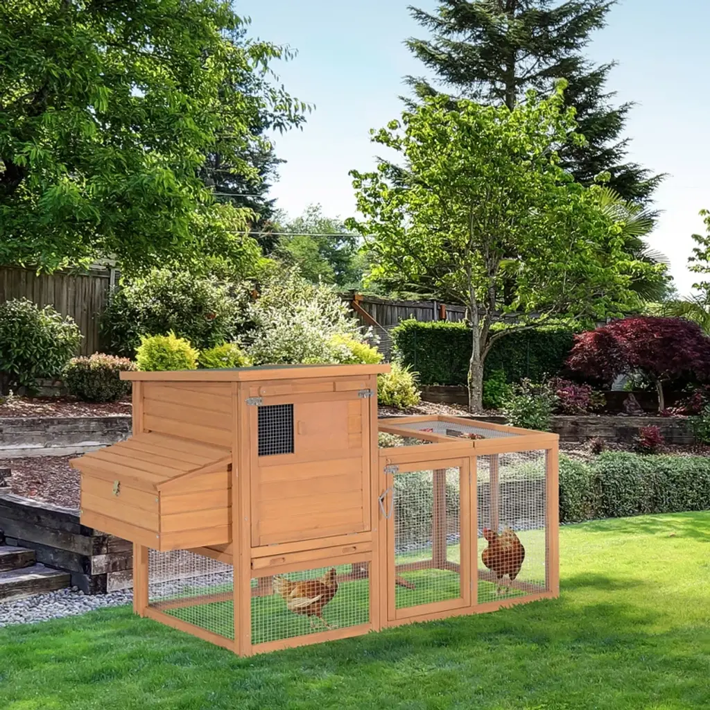 Pawhut 75" Wooden Chicken Coop Hen House Poultry Cage For Backyard With Outdoor Run Removable Tray And Nesting Box
