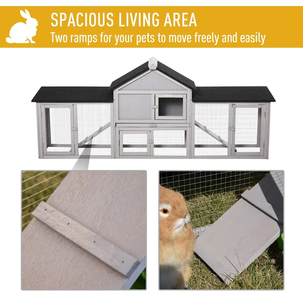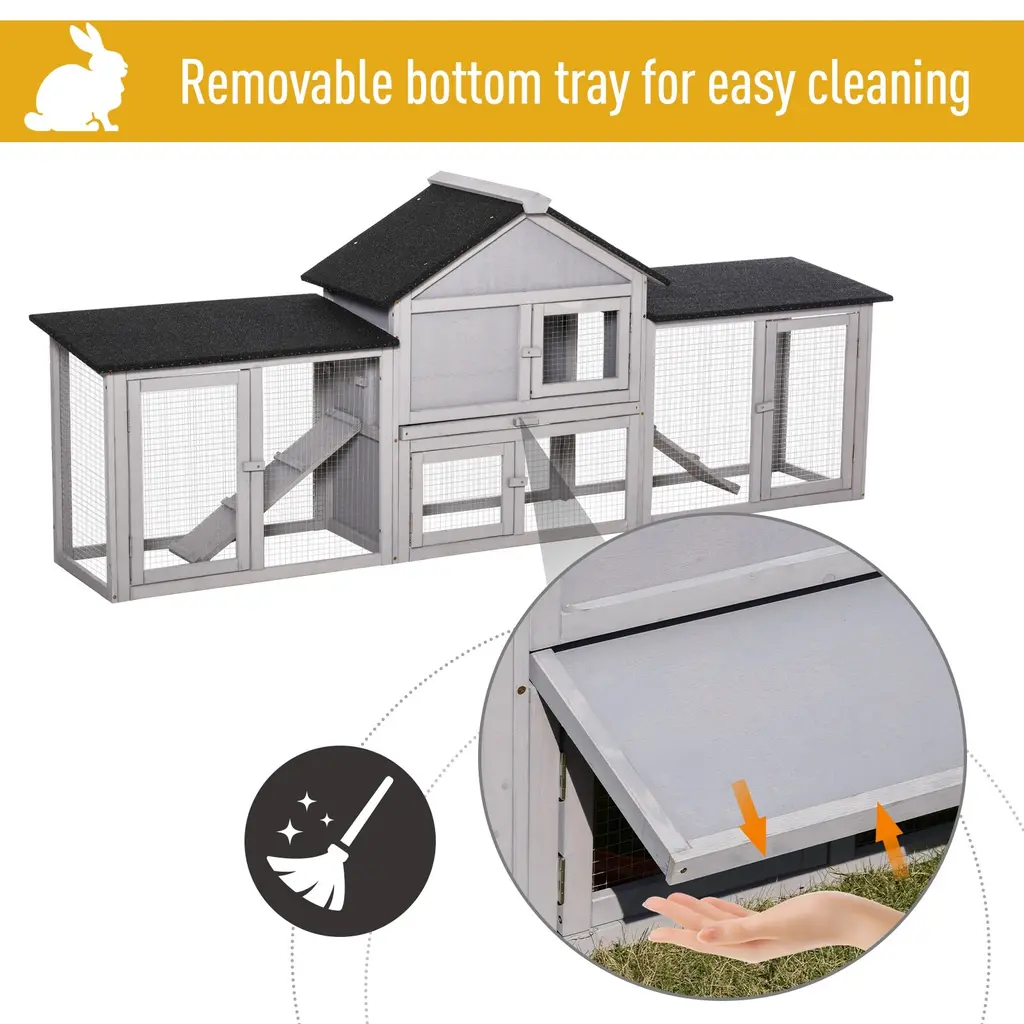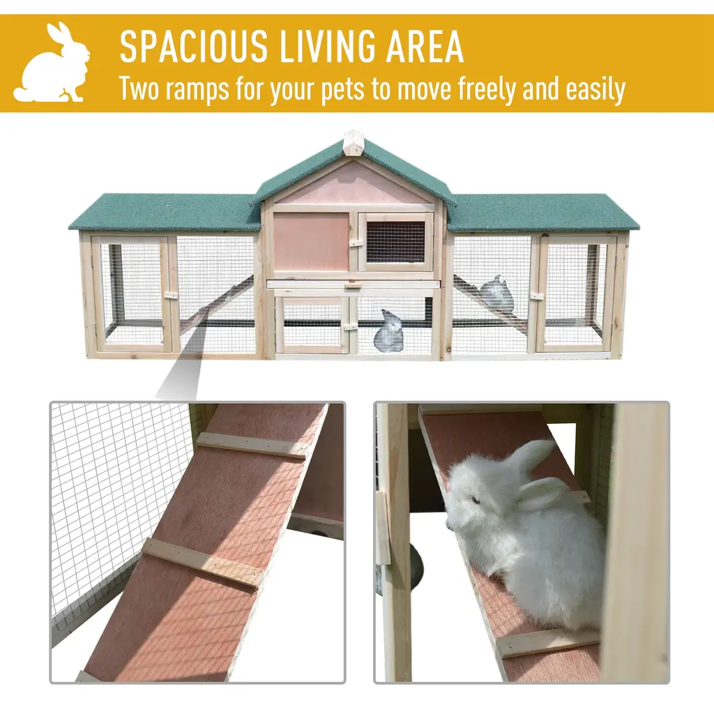 Pawhut 83" Wooden Rabbit Hutch Large Bunny Hutch House With Double Run, Removable Tray And Waterproof Roof For Outdoor - Natural