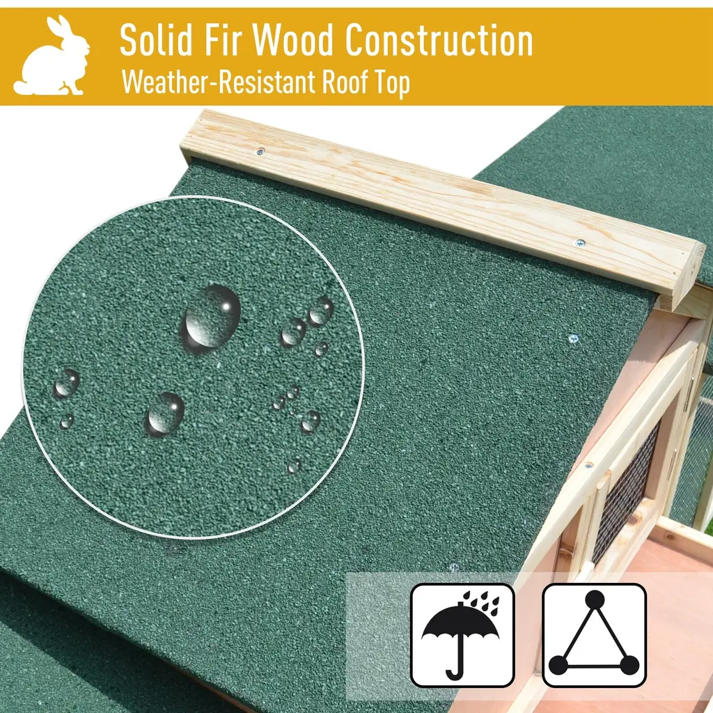 Give your bunnies or other small animals a home that offers plenty of access to fresh air with this Pawhut 2-story hutch. Crafted with a durable, fir wood frame, and an anti-UV, weather-resistant asphalt roof, the hutch features a raised perch to keep your animals off the ground in bad weather, and mesh siding to keep them safe from predators. Multiple lockable doors provide plenty of access to your rabbits, while a built-in removable dropping tray makes cleanup quick and easy. Features: > Specifications: