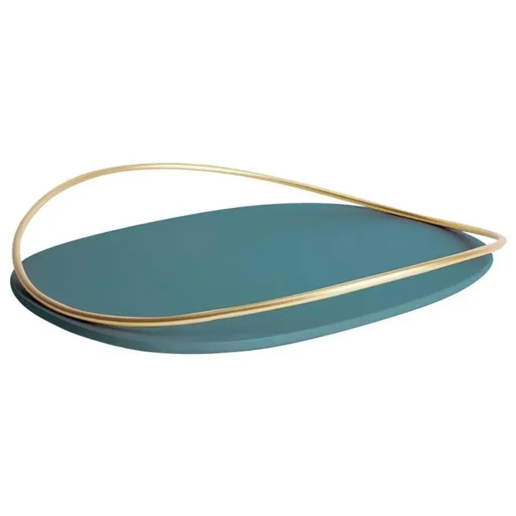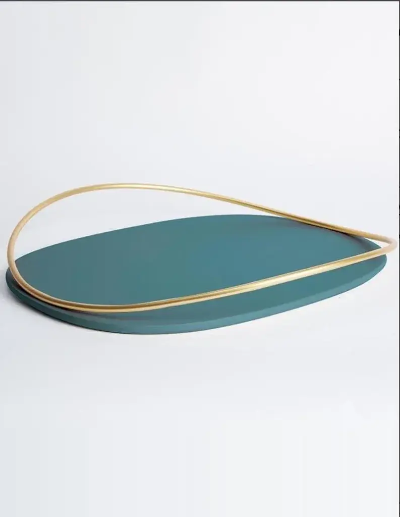 Petrol green touché d tray by mason editions dimensions: 36 × 48 × 6.4 cm materials: iron and mdf colours: taupe, cotton, burgundy, sage green, petrol green a light metal rod that rests on the surface and then lifts up, almost touching the surface with a quick tap, a movement that defines the handles of touché trays. The organic shape of the oval base communicates with the thin tubular, giving the impression of a perpetual undulatory motion, which seems to vanish when the trays are looked at from above. This oval tray with a round handle won’t go unnoticed in the eyes of your party and dinner guests. The round mdf base is available in several colours, with a slim handle in galvanized 24k gold. A sleek design that adds a touch of luxury to your dining experience. Mason editions is an italian company specialized in the production of design furniture, lighting solutions, and accent pieces. Born from the lifelong passion for lighting and entrepreneurial spirit of fabio and his partner silvia, mason editions places itself halfway between fine art and exquisite craftsmanship.