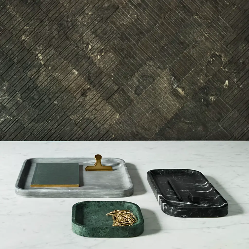 Made from a single piece of marble, shown here in Grigio Versilia, the Pietra L04 Tray was created by Piero Lissoni to turn a functional piece into an elegant feature piece. A wonderful place to display a vase or other elegant objects, smaller versions of the tray in Verde Alpi and Nero Marquinia are available in a set.